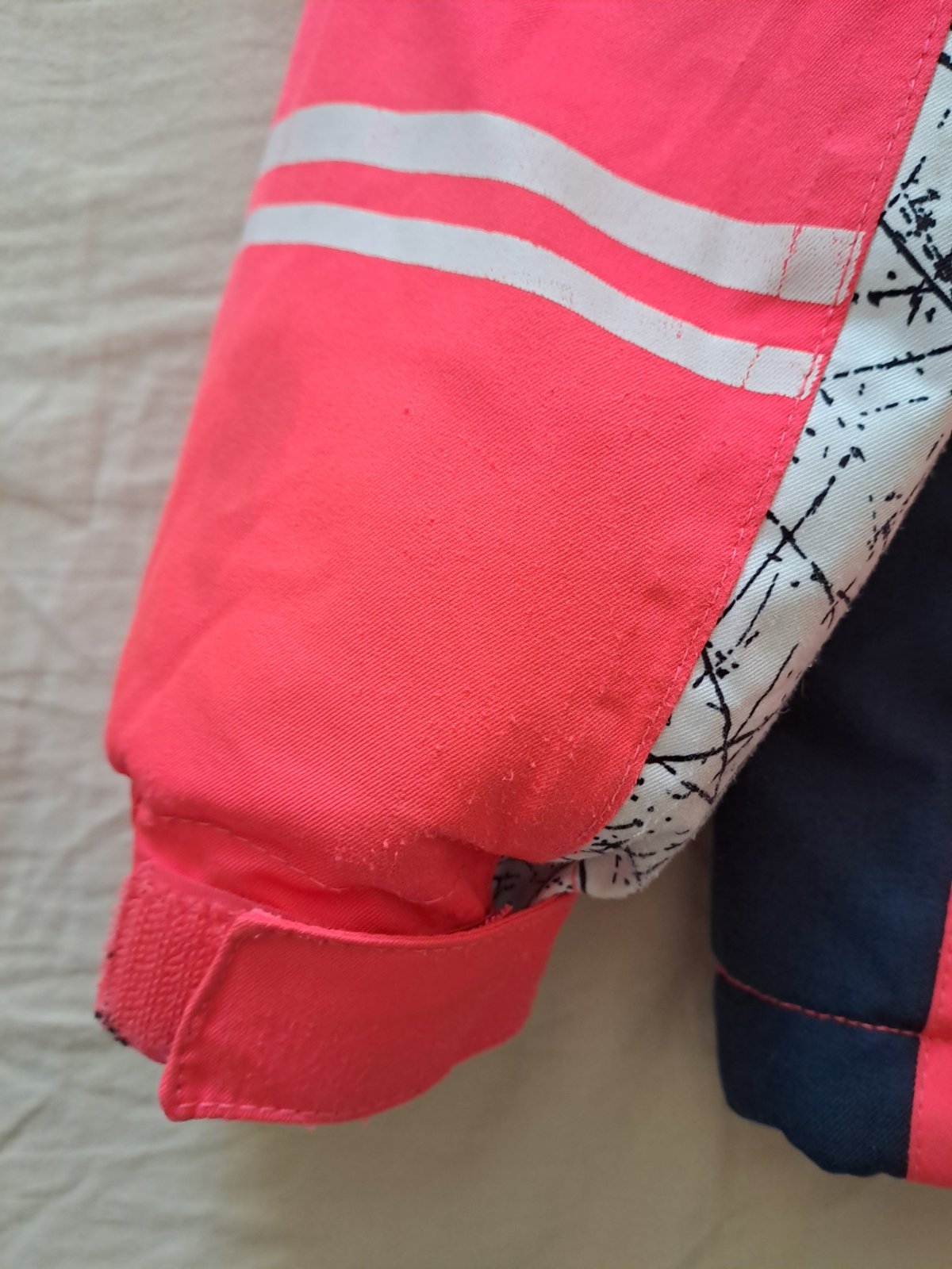 Super lyžiarska bunda, kupovaná na MK, mali sme ju na dvoch lyžovačkách a okrem toho ešte párkrát na sebe. Jediný nedostatok sú trošku ošúchané reflexné pásiky na rukávoch, ale asi sme ju už takú kúpili. Na ľavej strane hrudníku vrecko na skipas, bočné vrecká sú na zips a má snežný pás. Boli sme s ňou veľmi spokojní, nikdy nám v nej nebola zima ani nám nepremokla. Cena bez poštovného.