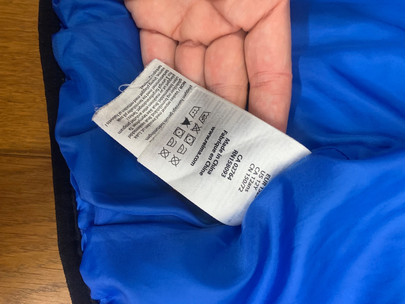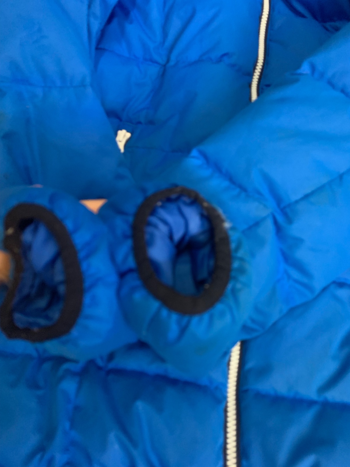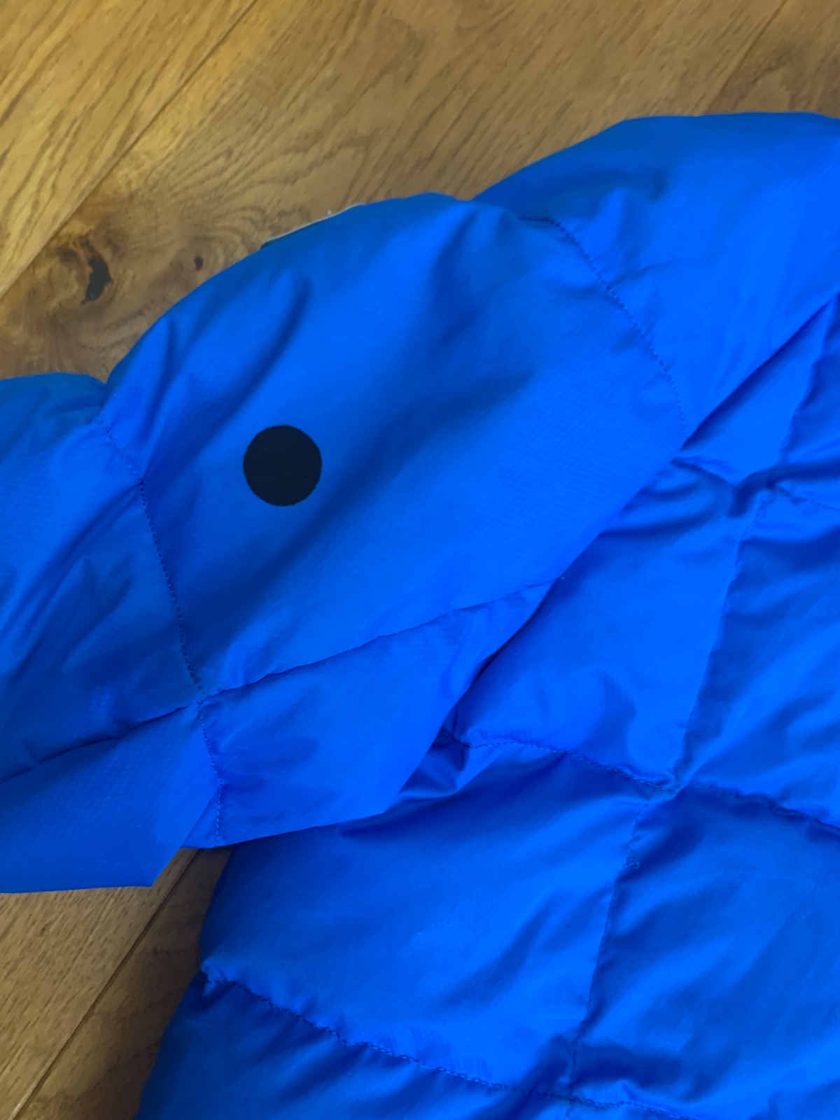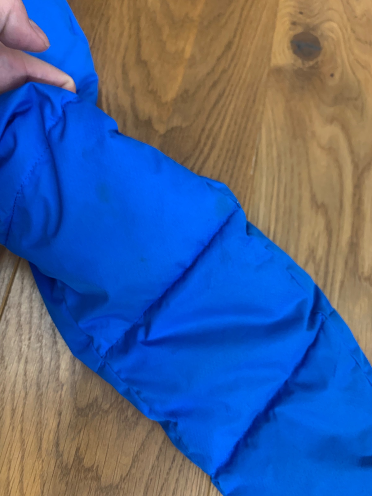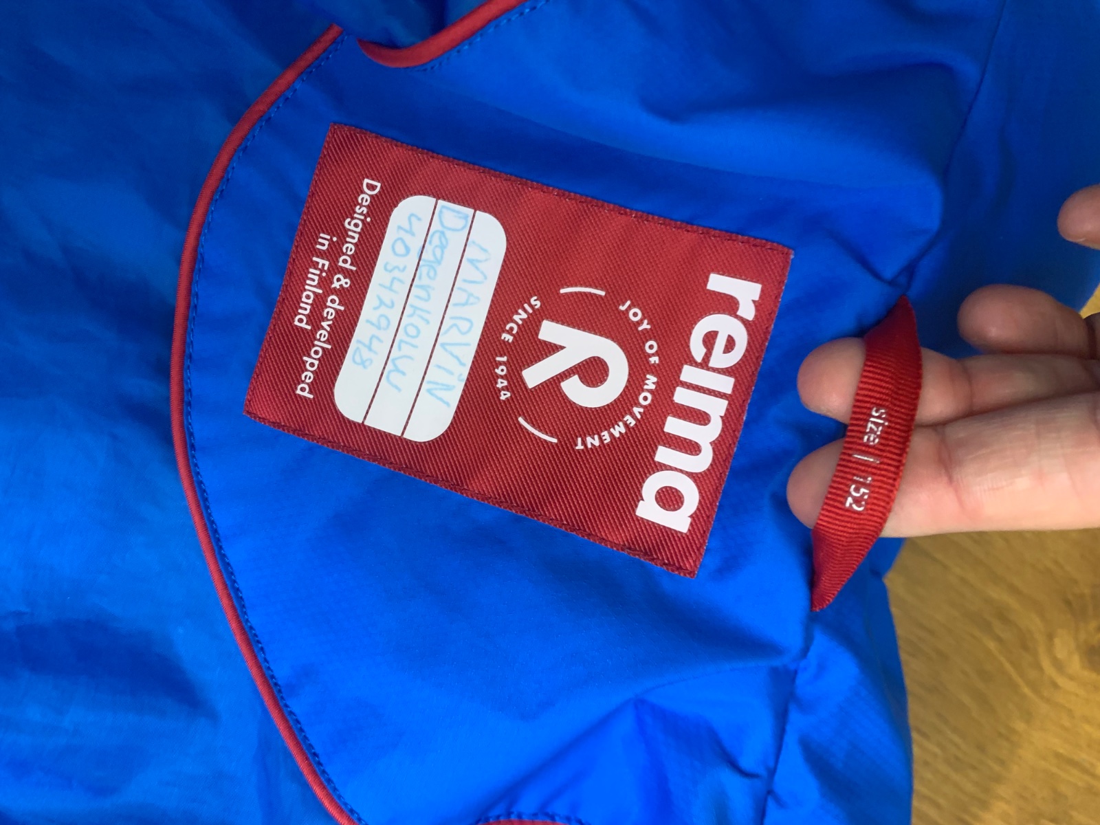 veľmi príjemná, makká, teplá, perie rozvrstvené rovnomerne, na rukáve nejaké fliačky, na zadnom diely opravená reima reoair kit-om, bez kapuce, sedí na 152 a 158