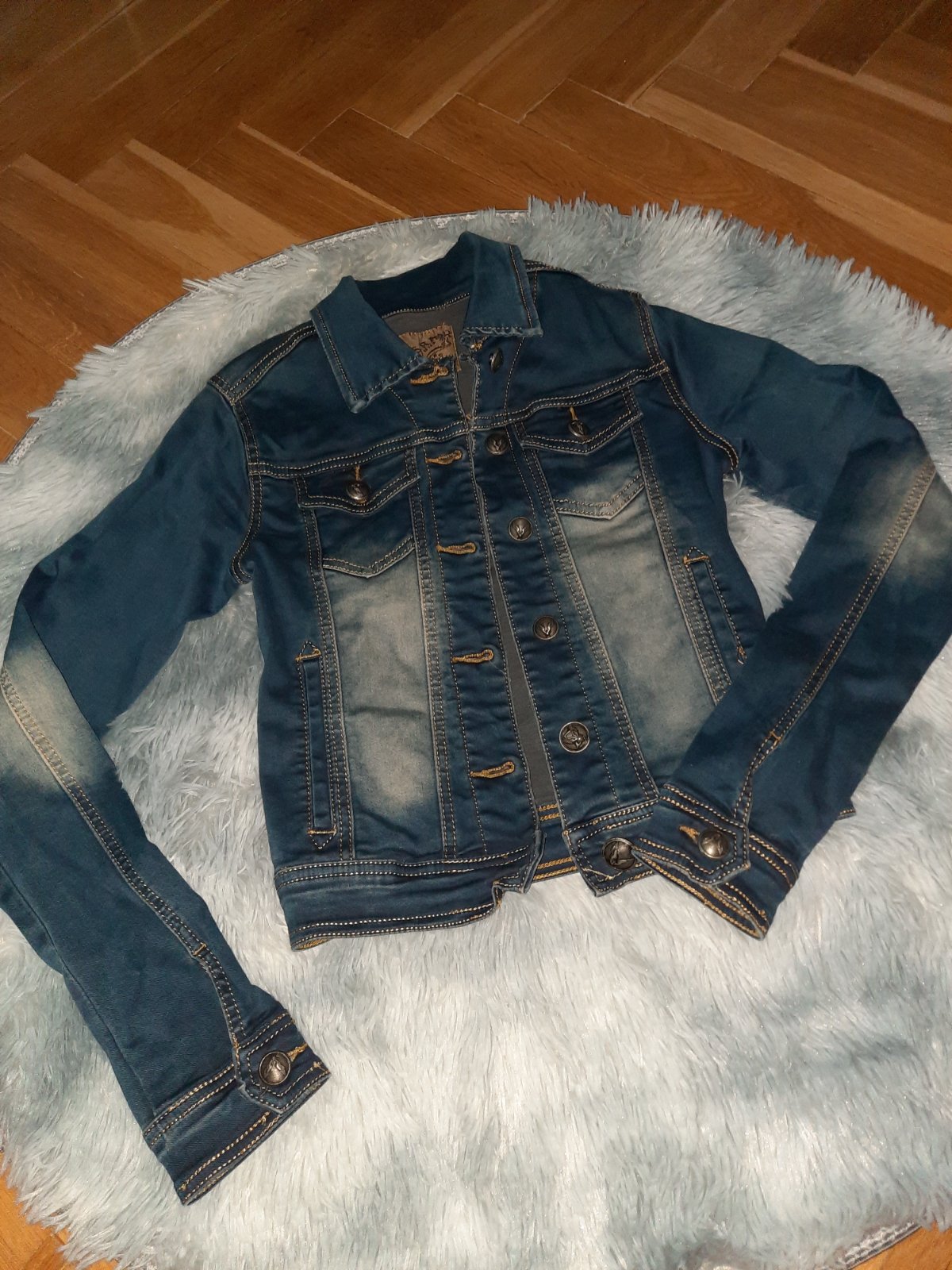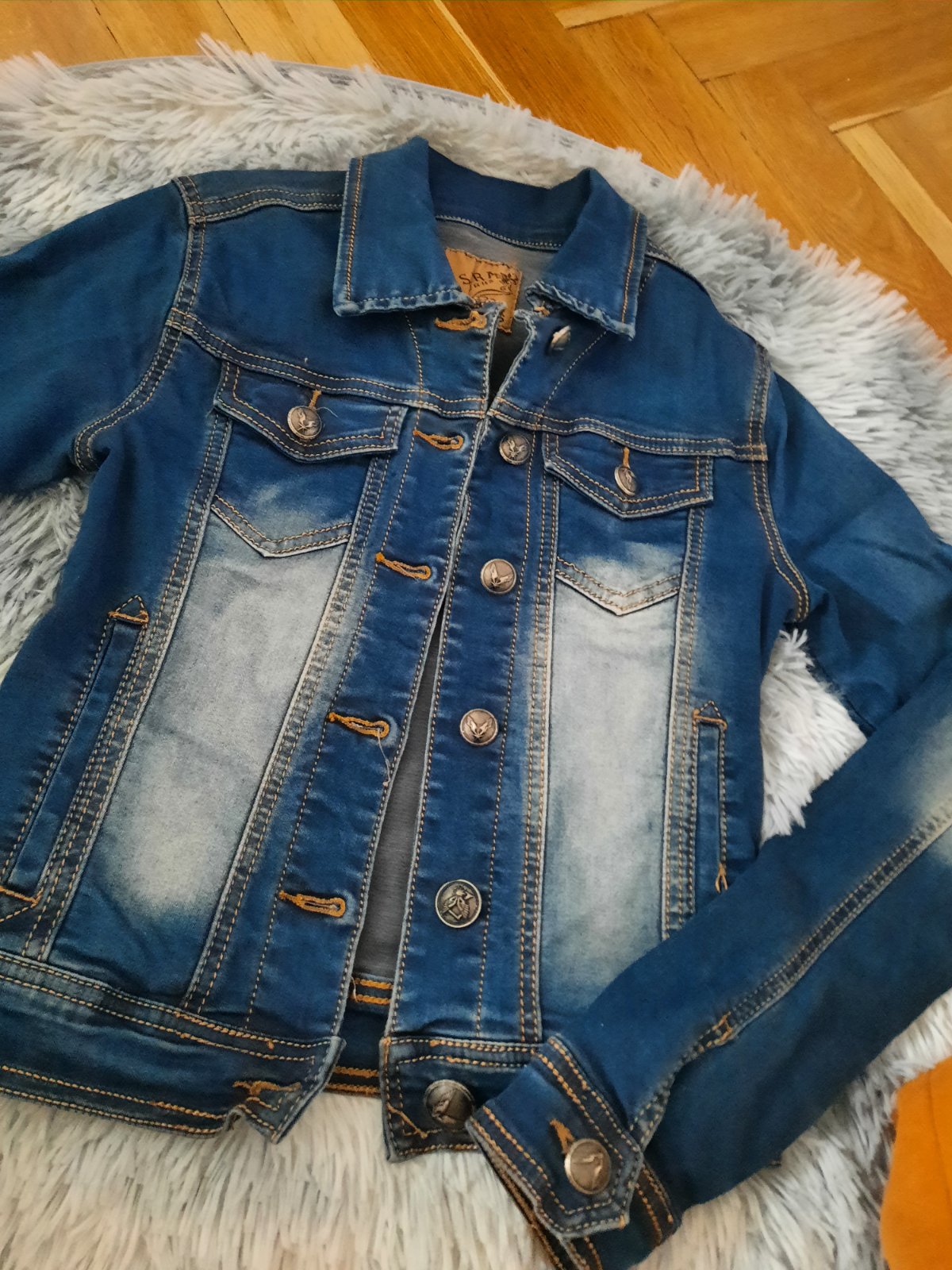 Predám krásnu štýlovú riflovú bundu v TOP stave, mala som ju max.5krát. Už pri kúpe mi bola llt, som myslela, že do nej schudnem, no nepodarilo sa :-( Má zips aj kovové gombíky, v predu vrecká a v ...