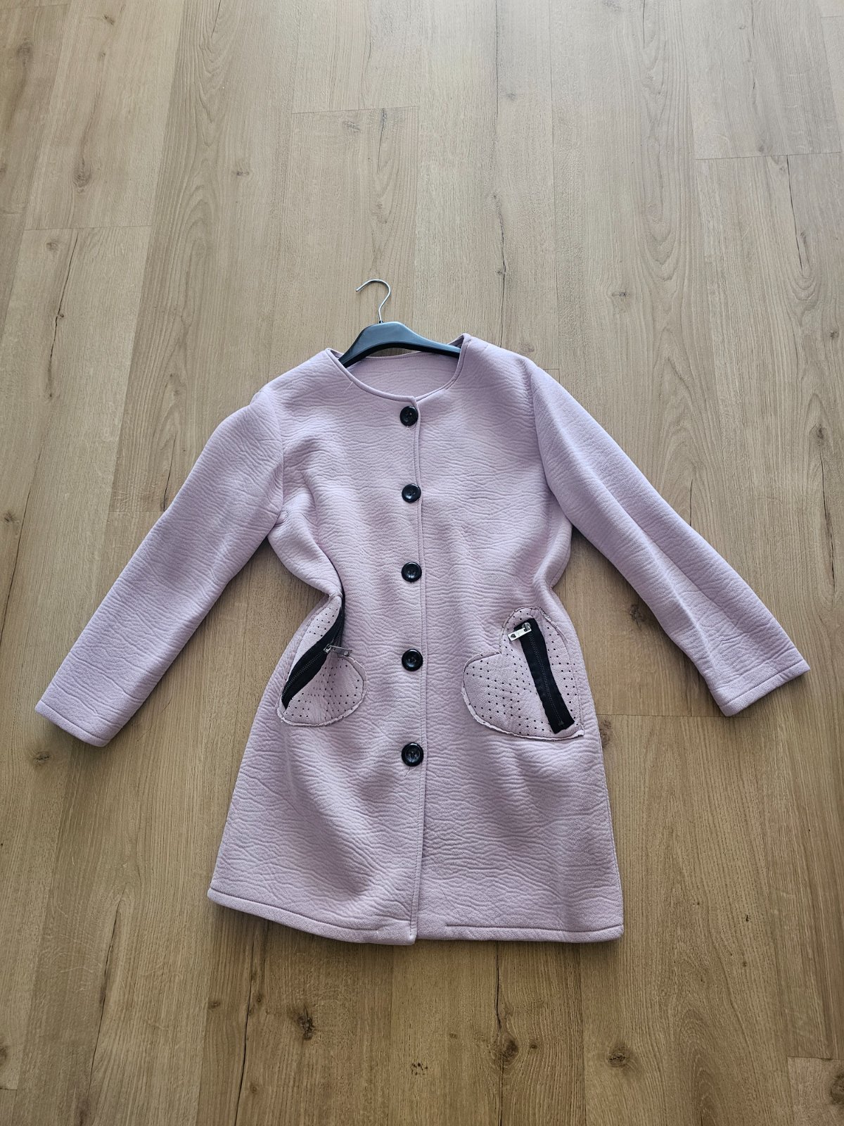 Kabátik je elastický a príjemný mäkký materiál. Ako novy. Kupovaný v butiku. Odporúčam do veľkosti L. V prípade záujmu pomeriam.