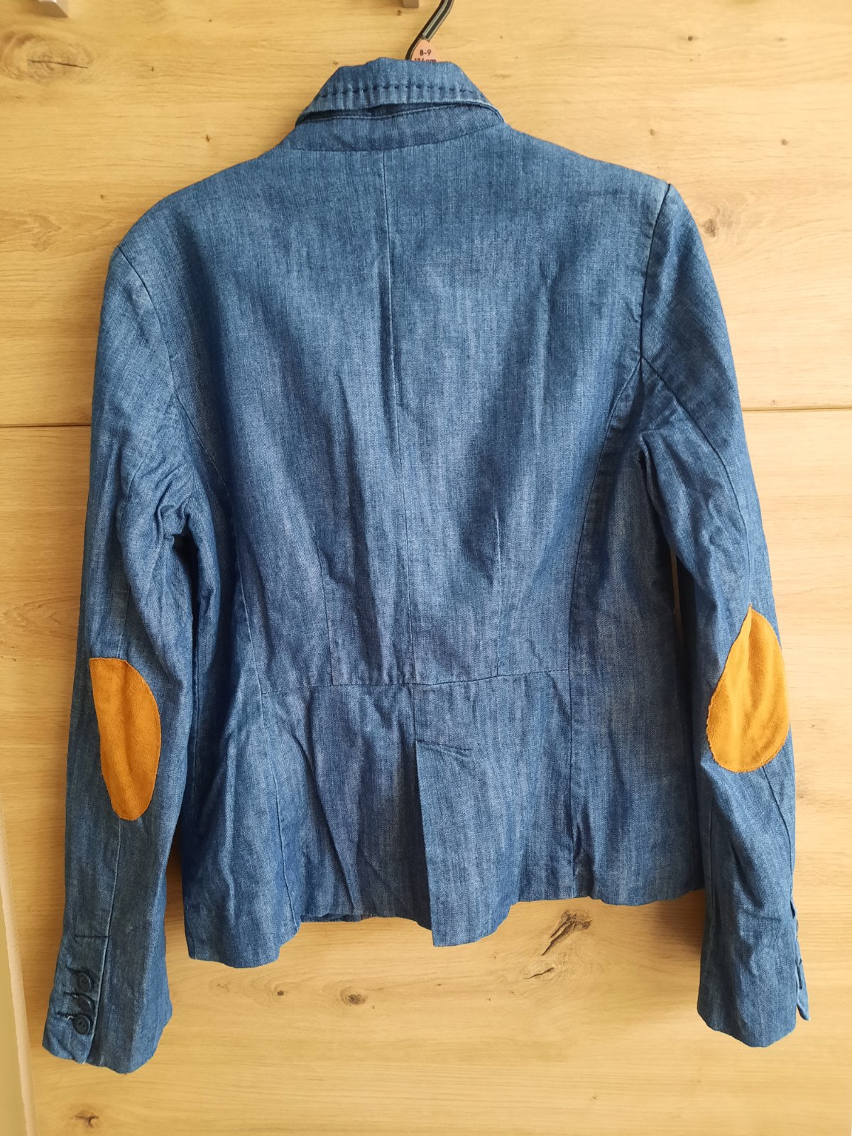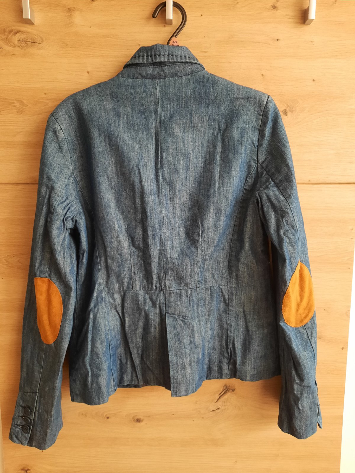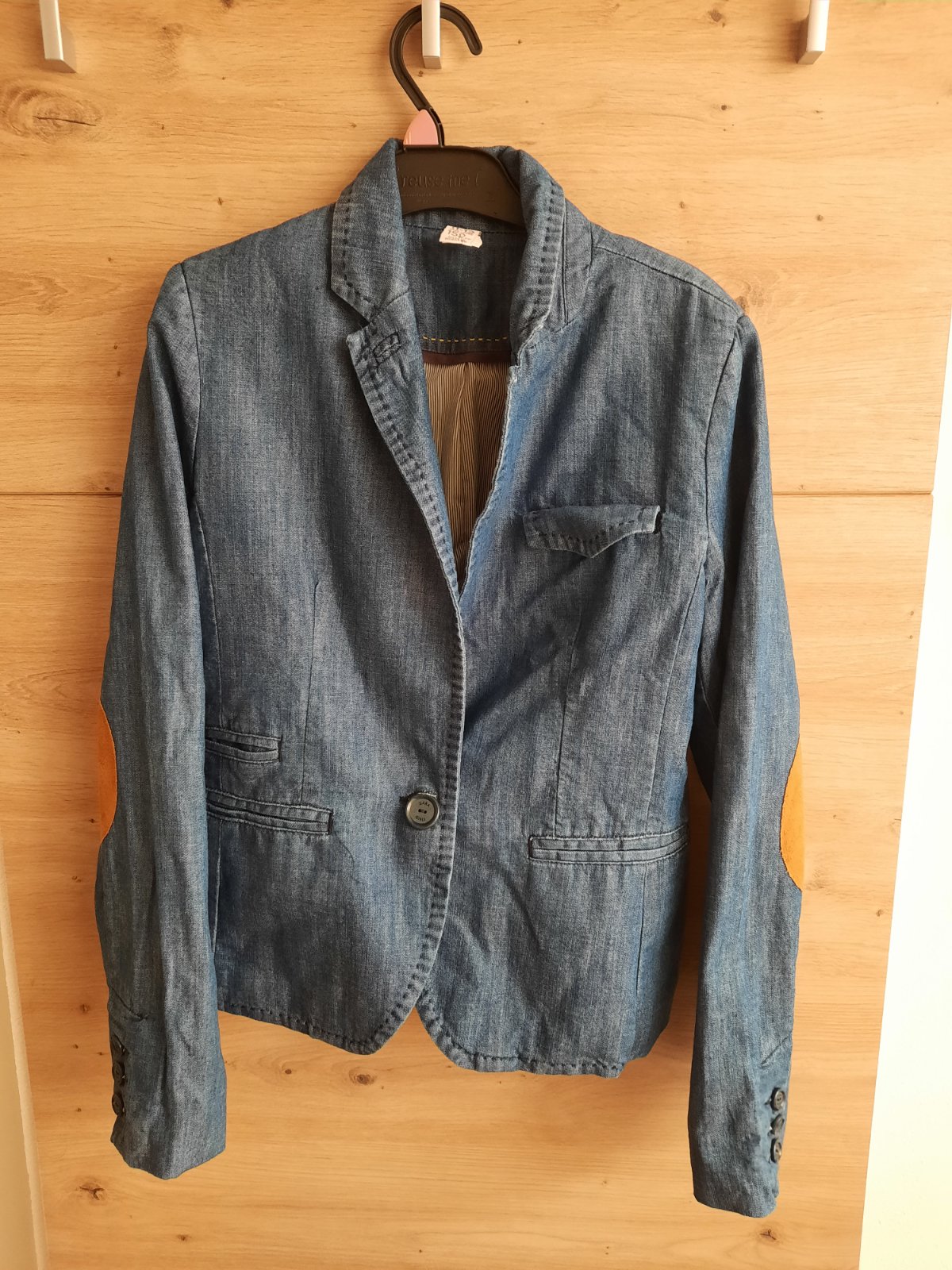 Sako rifľového vzhľadu vo veľmi dobrom nosenom stave.Zapínanie na jeden gombík.Na lakťoch ozdobné nášivky.Farba ako na druhej foto