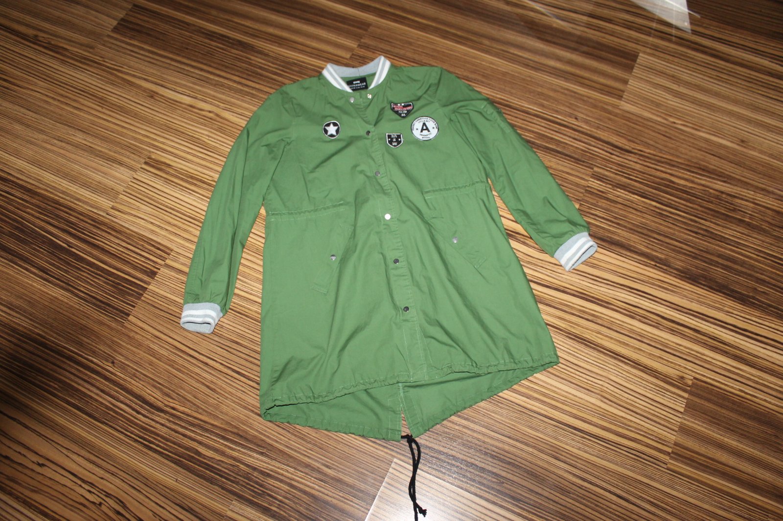 Štýl parka. Na prechod, nepodšitá. Málo nosená, v super stave, ako nová, bez poškodení. Veľ. CS, RO: š 2x 50 cm, dl. 80 cm. Rukáv od krku 72/48 cm spod pazuchy. Váha 358 g.