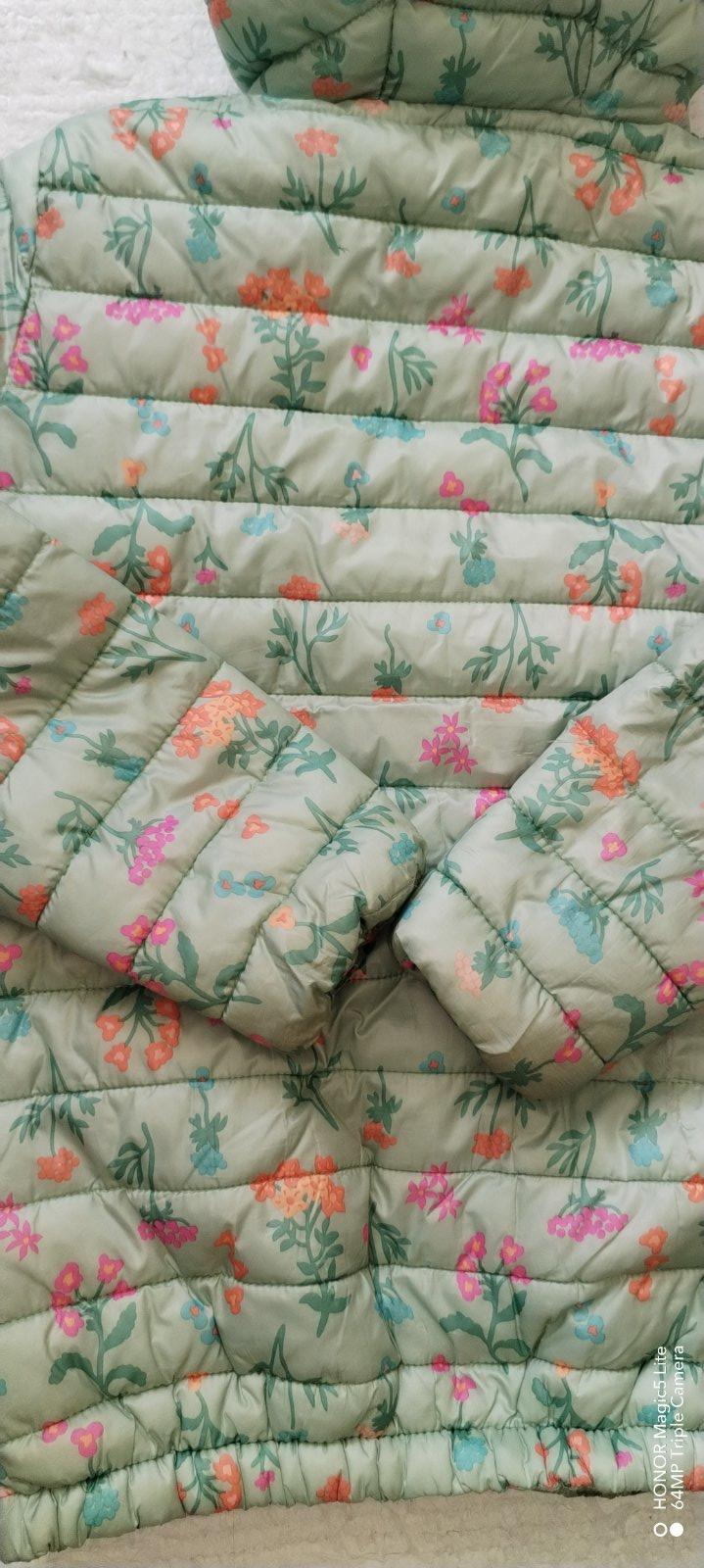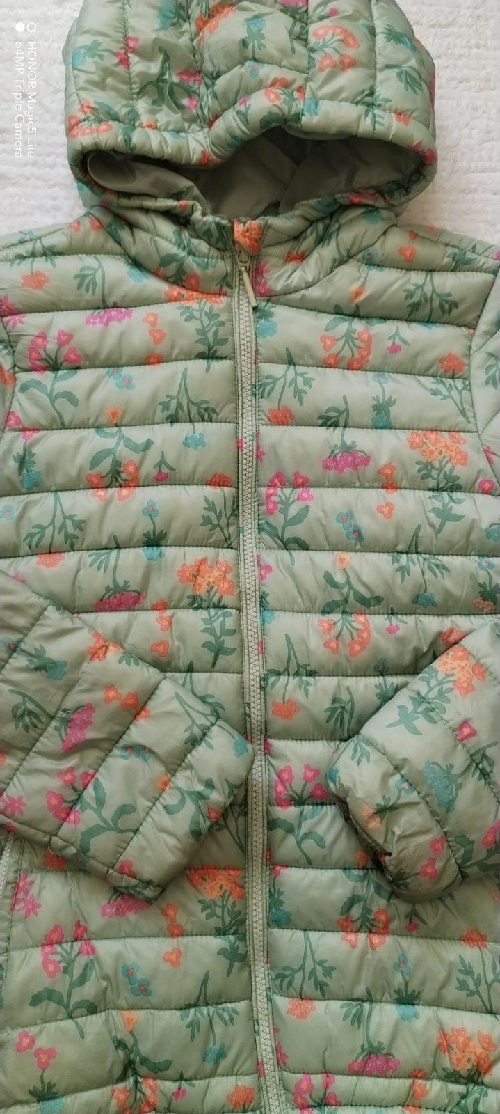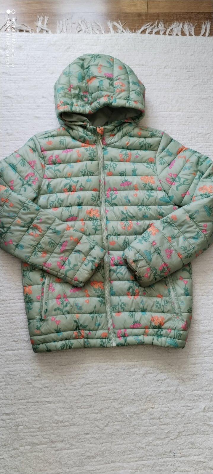 Krásna mätová bundička s kvetinovým vzorom Nepremokavá Veľká kapucňa so stojačikom Dlhé rukávy s elastickými manžetami Dve vrecká na zips Hladká podšívka Veľkosť 152 Akcia na tento týždeň cena 15,...