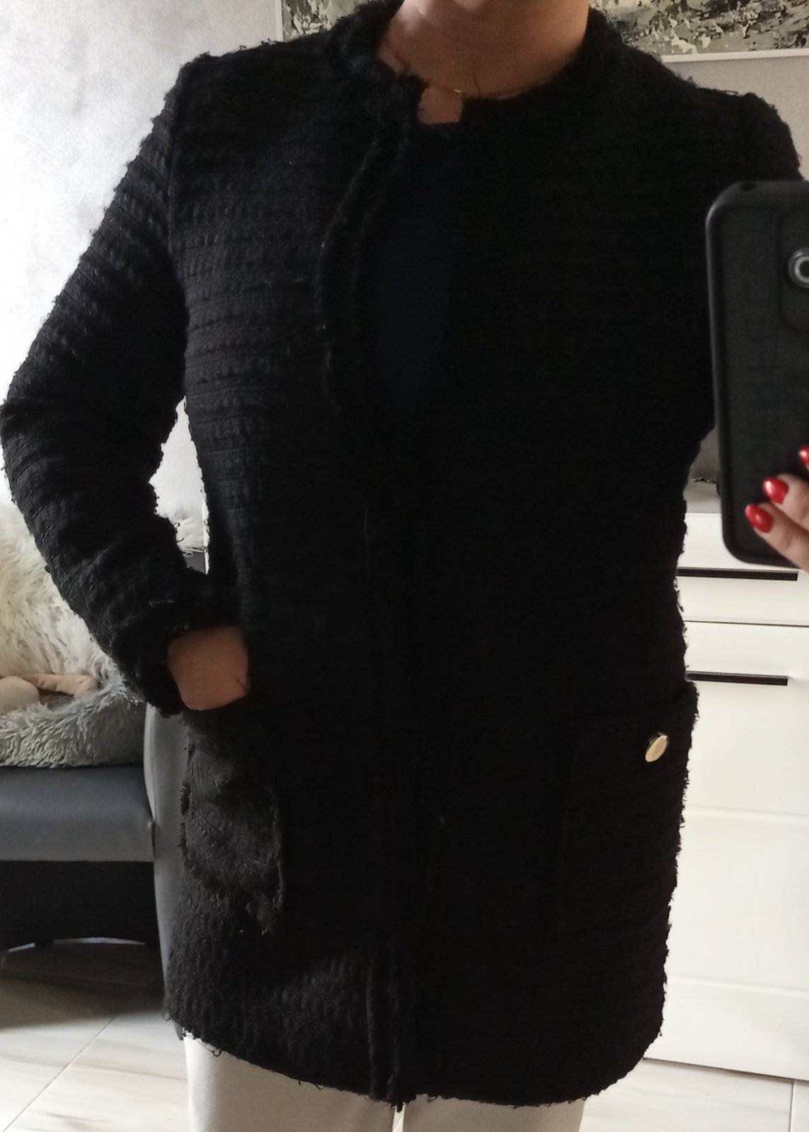 Prechodný kabátik Zara, zapínanie na úchytky (babka/dedko). Má ozdobné gombíky na vreckách, keď sa odopnu, ich nevidno (mne tam vadili). Žiadne poškodenie, symbolická cena. PC 59,90€. Šírka je 50cm, dĺžka 78cm