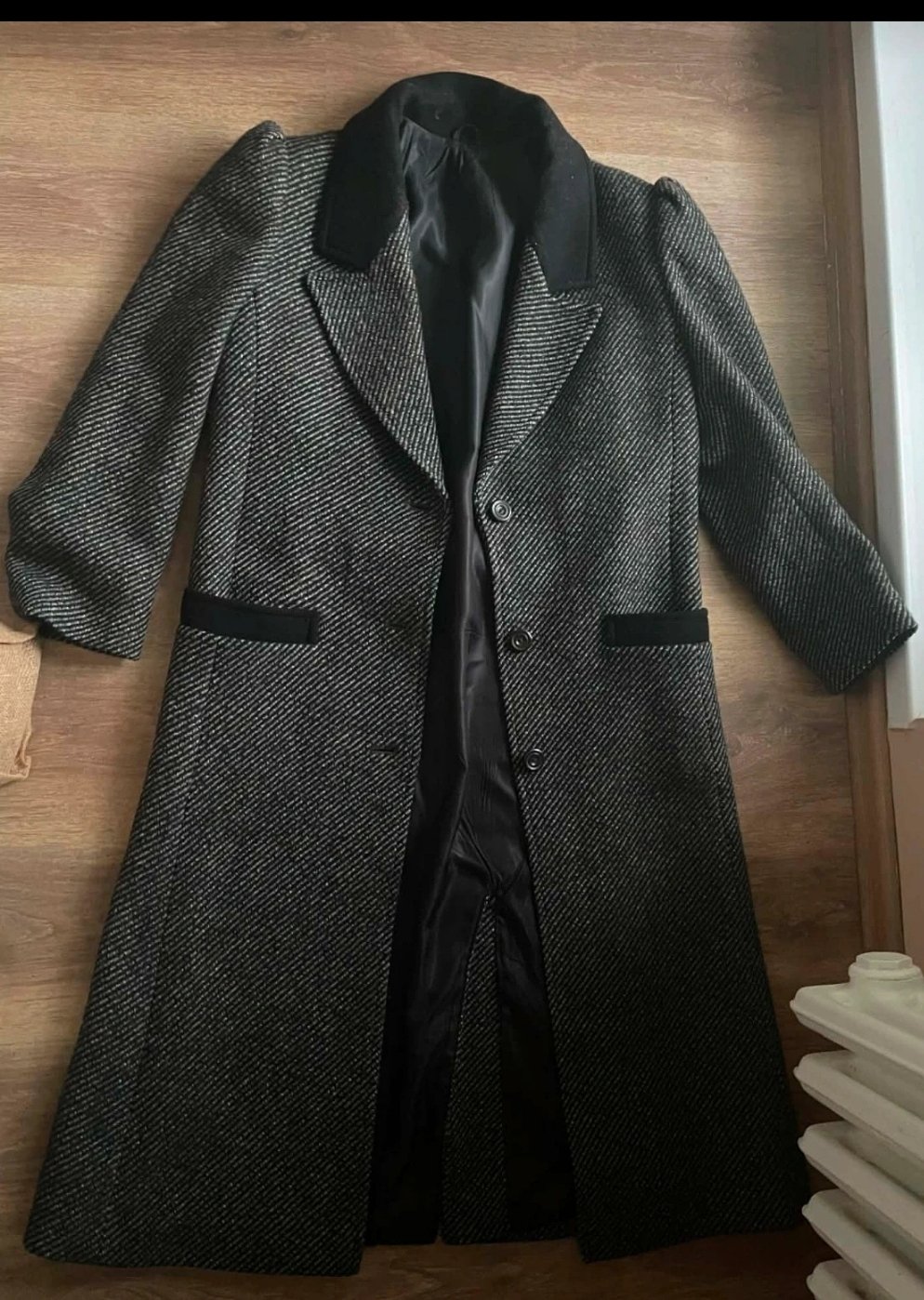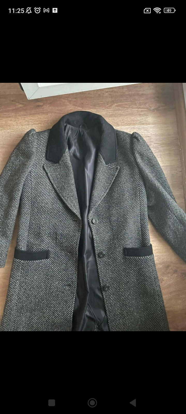 Predám teplejší kabát, vhodný aj na teplú zimu. Veľkosť odhadom, chýba štítok (nosím M - L), rozmery na foto. Farba ako na prvej foto - taká tmavošedá. Cena aj s obyč.poštovným.
