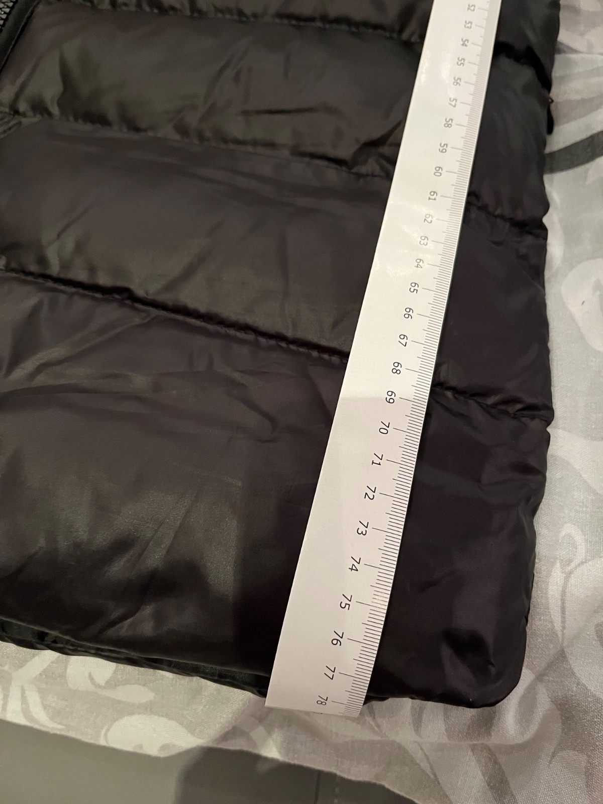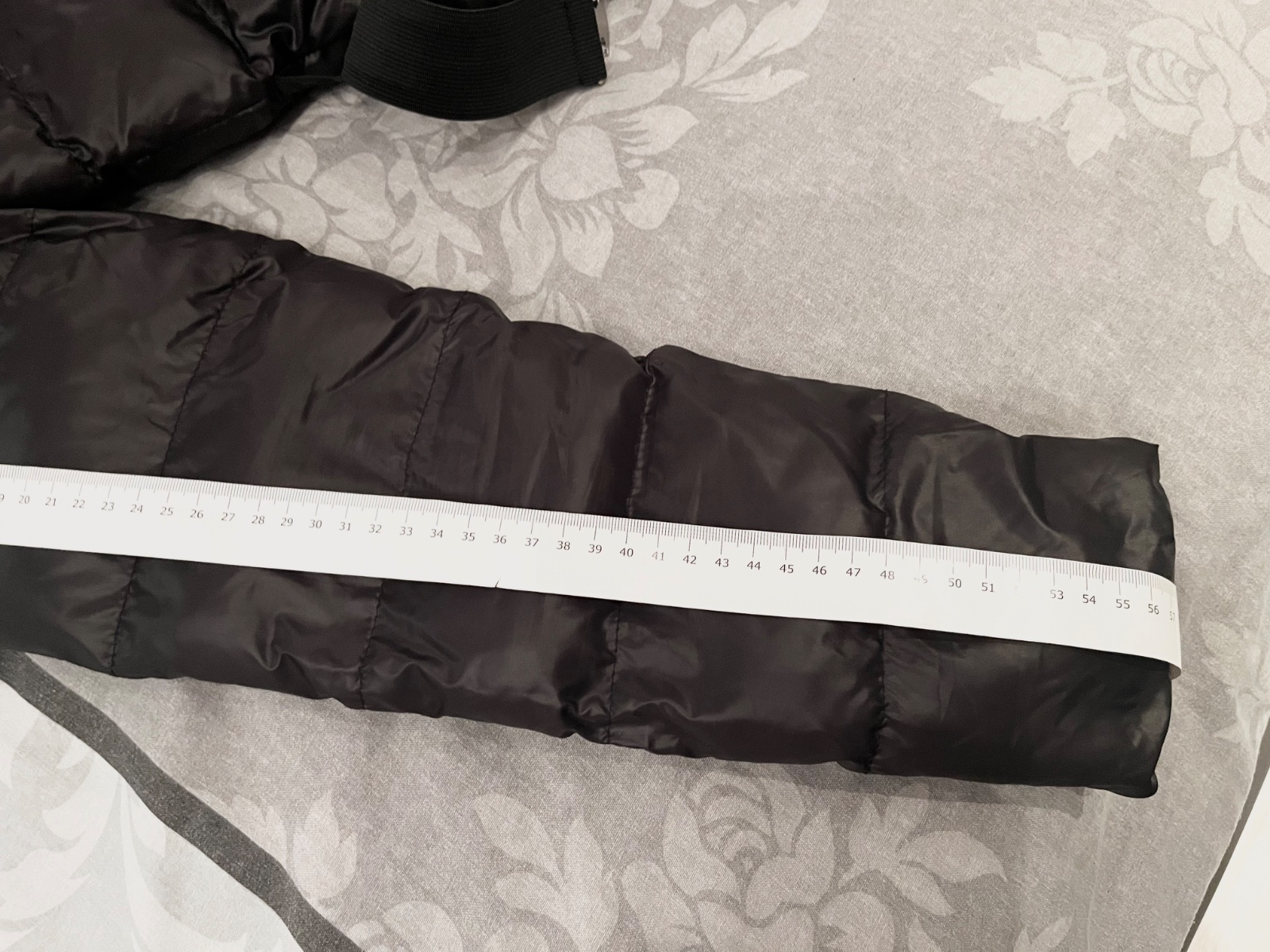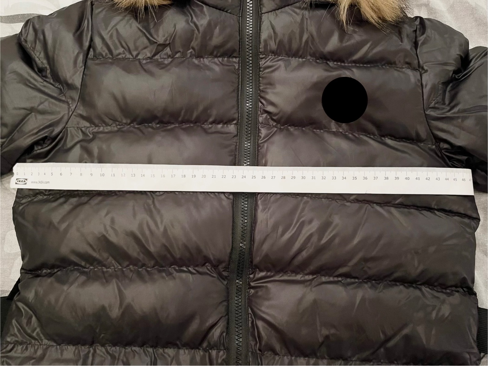 Predám novú čiernu lesklú zimnú bundu s opaskom,veľkosť písaná M,ale je to skôr menšie M alebo S. Rozmery sú na fotkách.