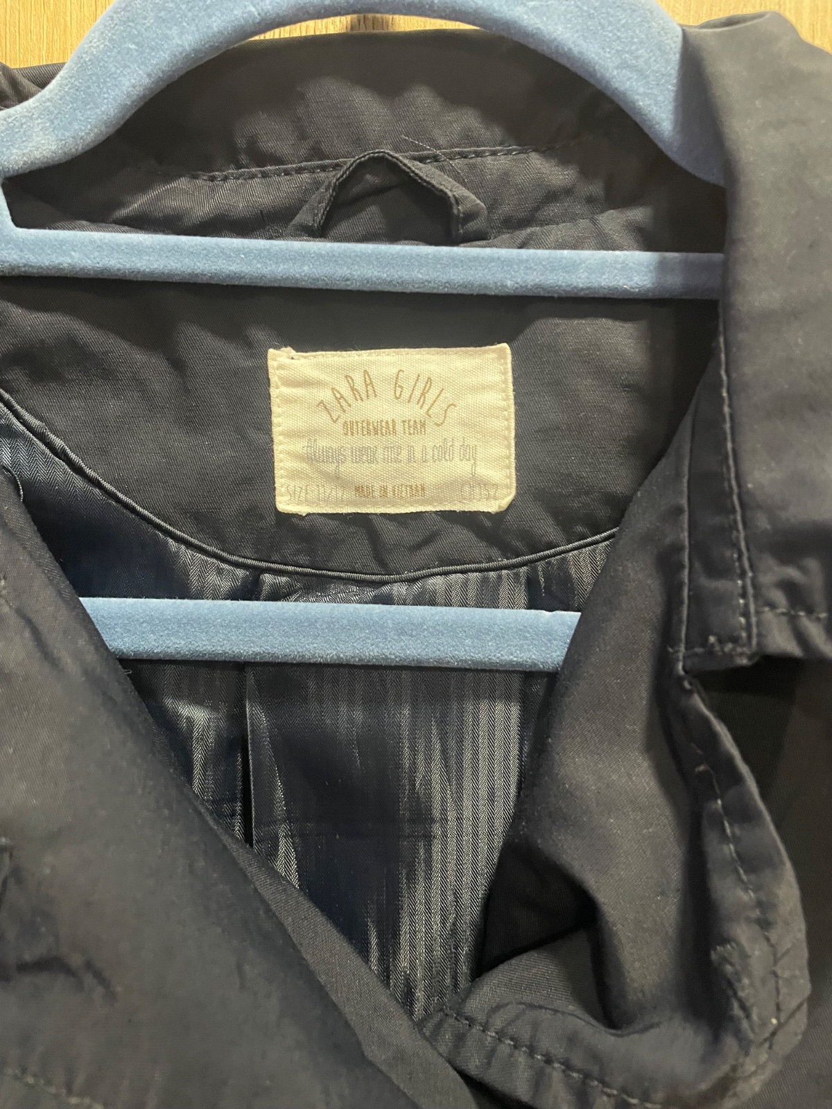Krásny vlnený kabátik, super na jar/ jeseň. perfektný. 100% stav. teplučký. Farba je tmavomodrá. na 11-12 rokov (nositeľný skôr) ZNAČKA: ZARA, VELKOST: 152