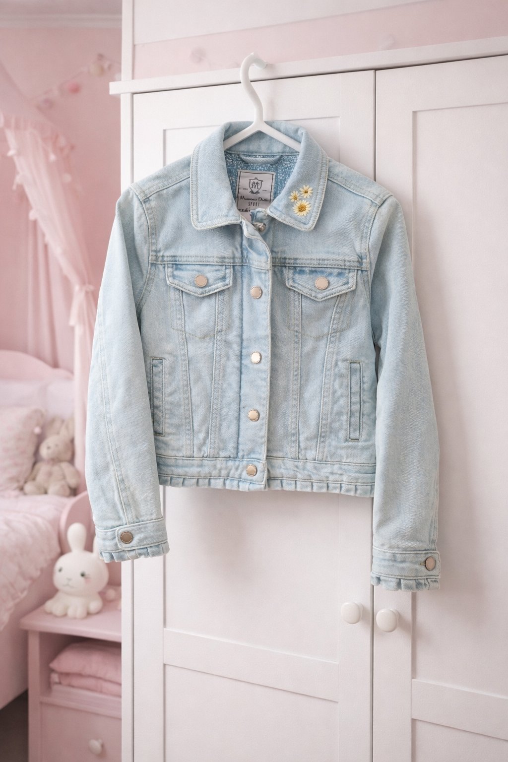 Riflová bunda s ručne vyšívanou slnečnicou