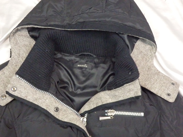 Luxusná čierna perová bunda so zapínaním na obojstranný zips, materiál 100% polyester, goliera s podielom vlny, super stav.