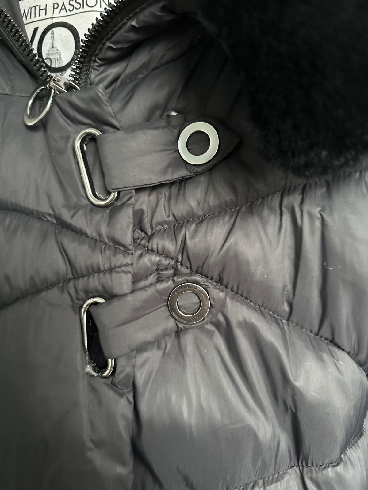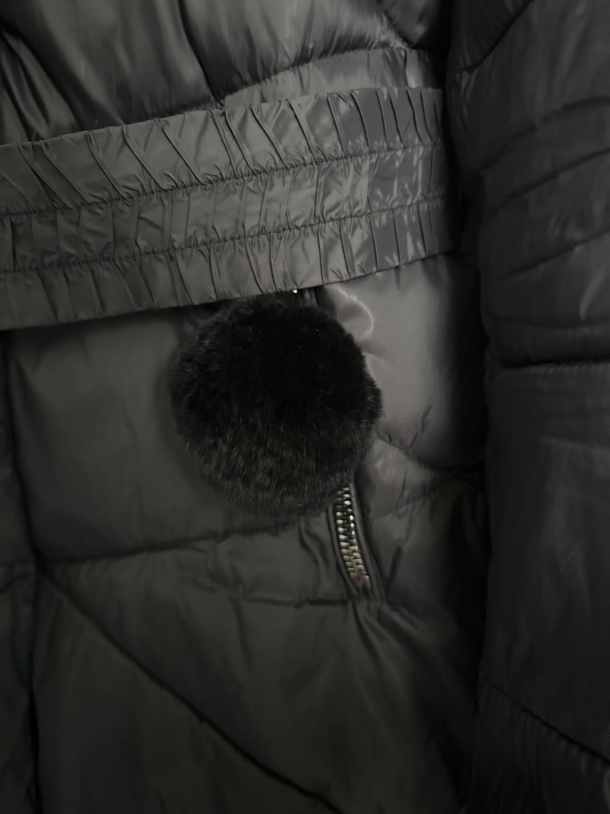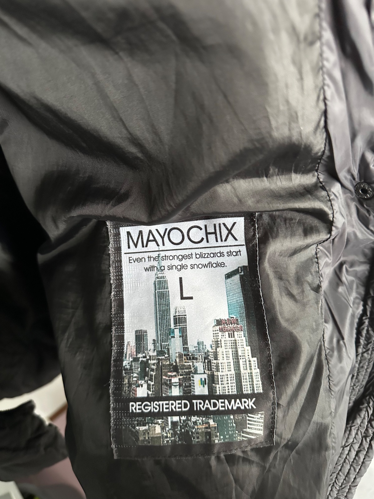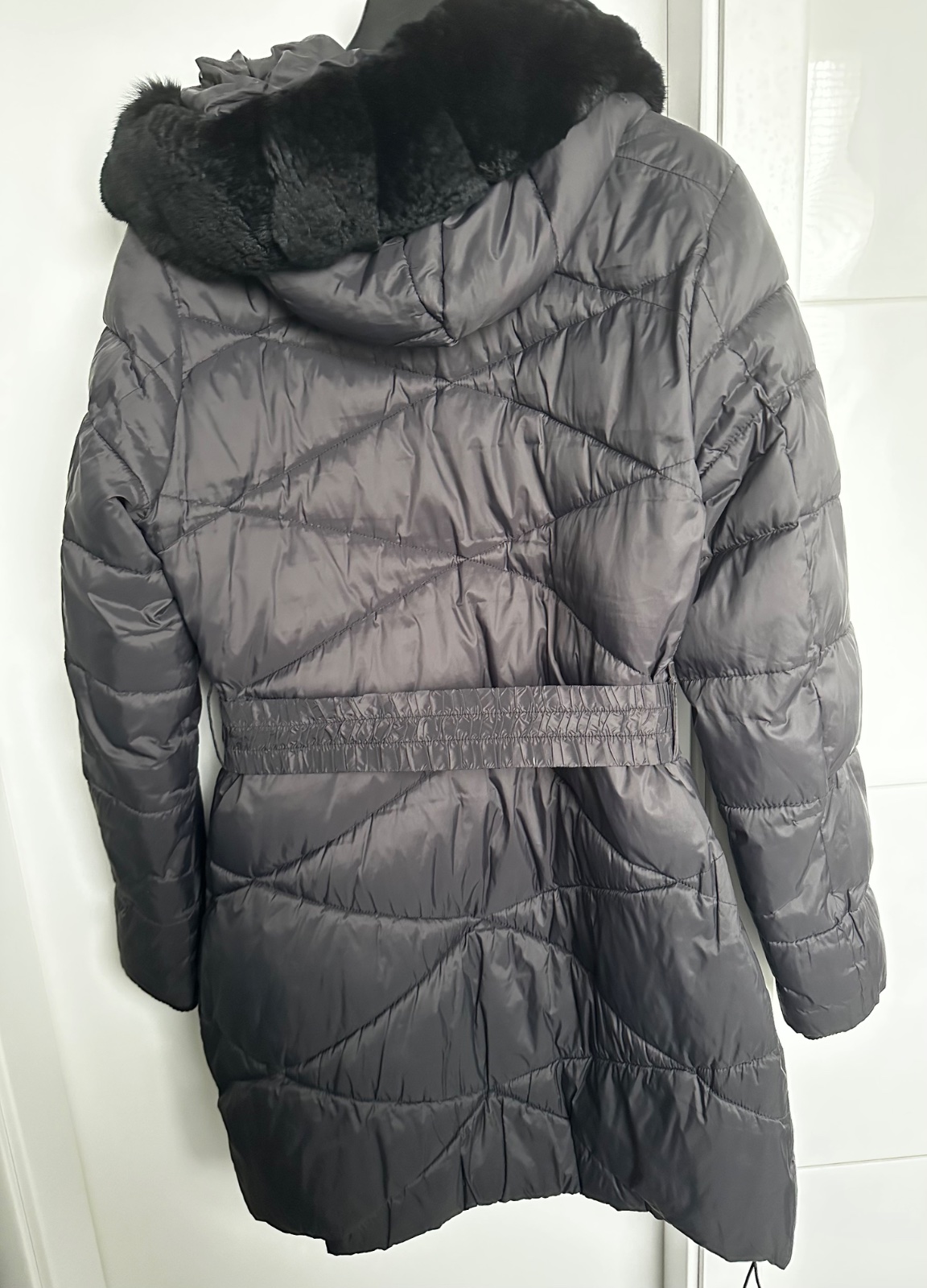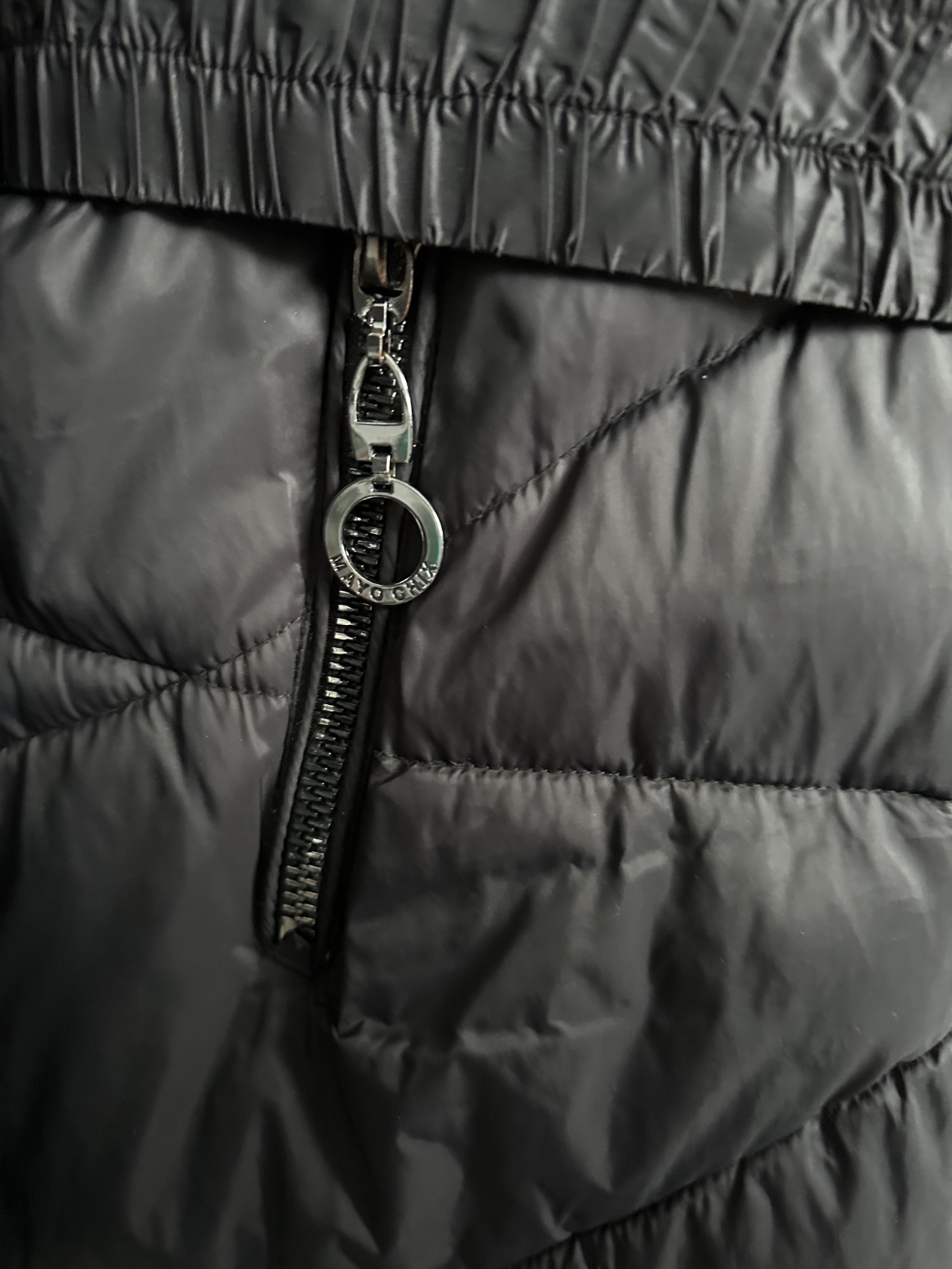 Predám štýlovú a teplú zimnú bundu od značky MAYOCHIX v elegantnej čiernej farbe. Je vybavená kapucňou s bohatou a príjemnou čiernou umelou kožušinou. V páse sa nachádza elastický opasok s výraznou kovovou prackou s logom "MC", ktorá bunde dodáva luxusný nádych, doplnený o strieborné kovové detaily a logo na rukáve. Bunda je vo výbornom stave, bola nosená minimálne, a jej pôvodná cena bola 190€. Na poslednej fotke sa nachádza menšie poškodenie, ktoré nie je viditeľné pri nosení.