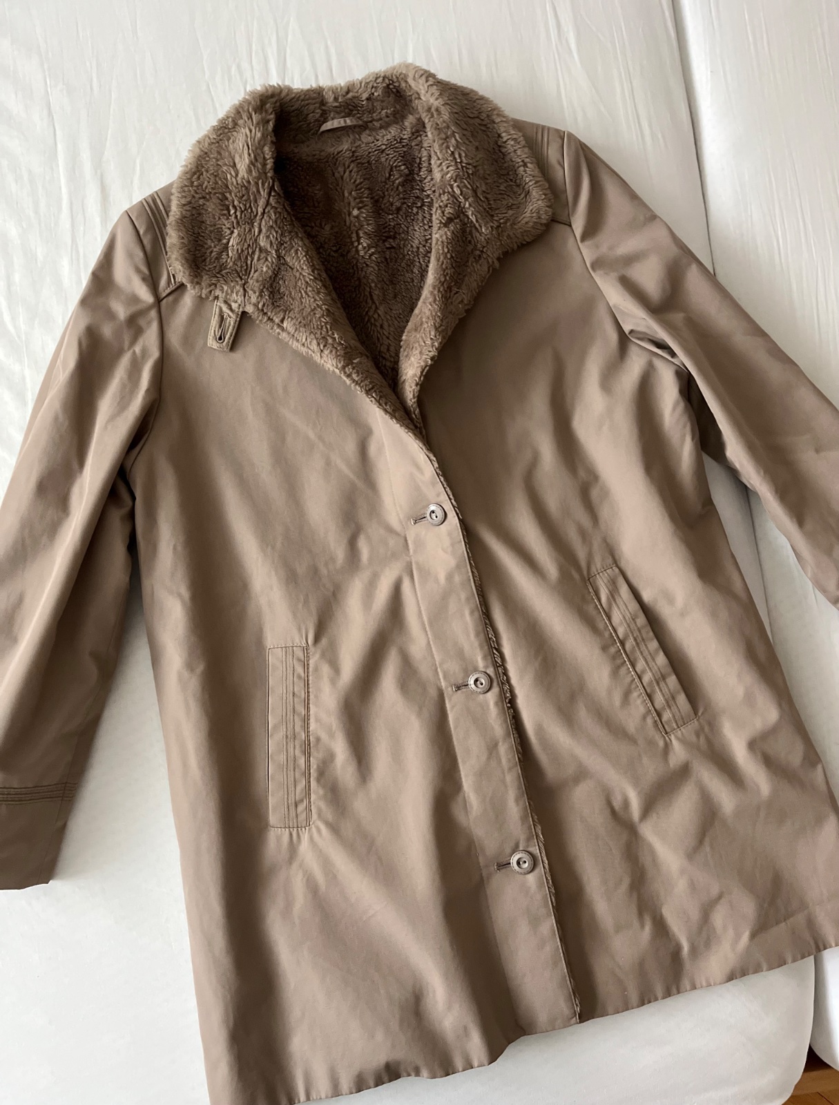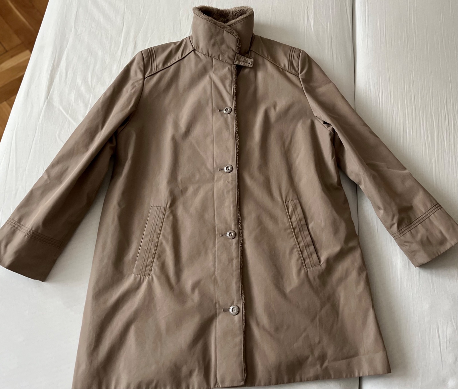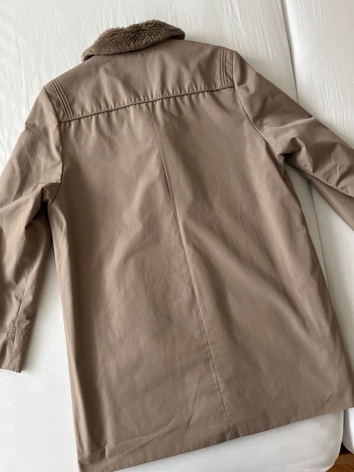 prechodný kabát zateplený umelou kožušinou, super stav, bez chýb.....d 87 cm, š 59 cm...
