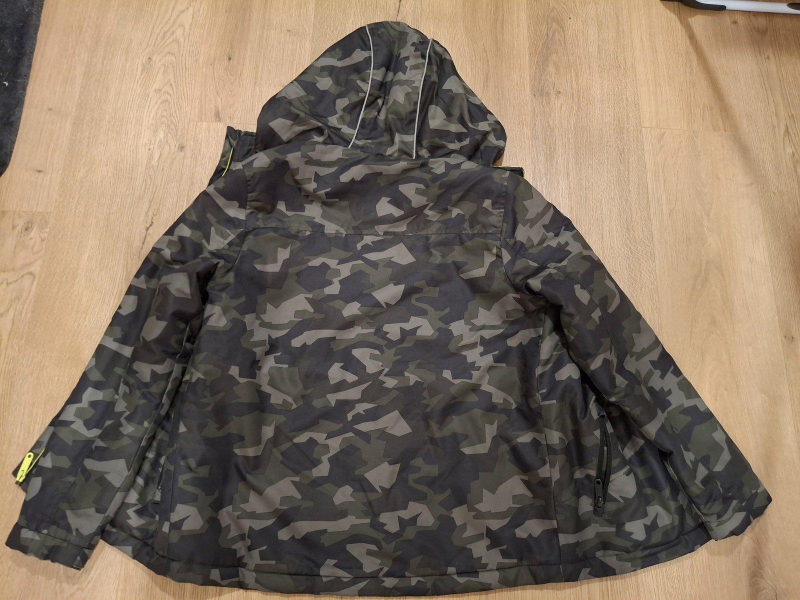 Predavam bundu, vetrovku, nosena obcas, v super stave, vnutro zelene ako na foto s otvorenou vetrovkou, kapucna pevna, rukavy ukoncenie so suchym zipsom. Rozmery: dlzka 64-67cm, sirka pod pazuchami 51cm, dlzka rukava od kapucne 73cm.