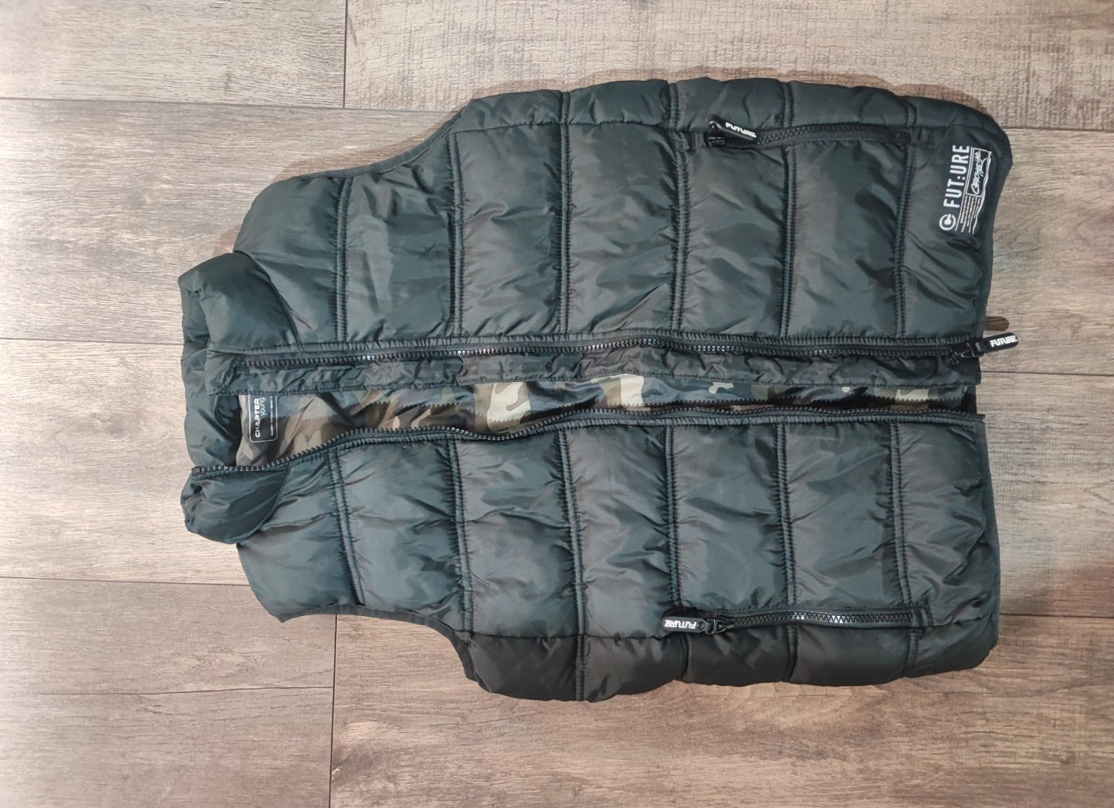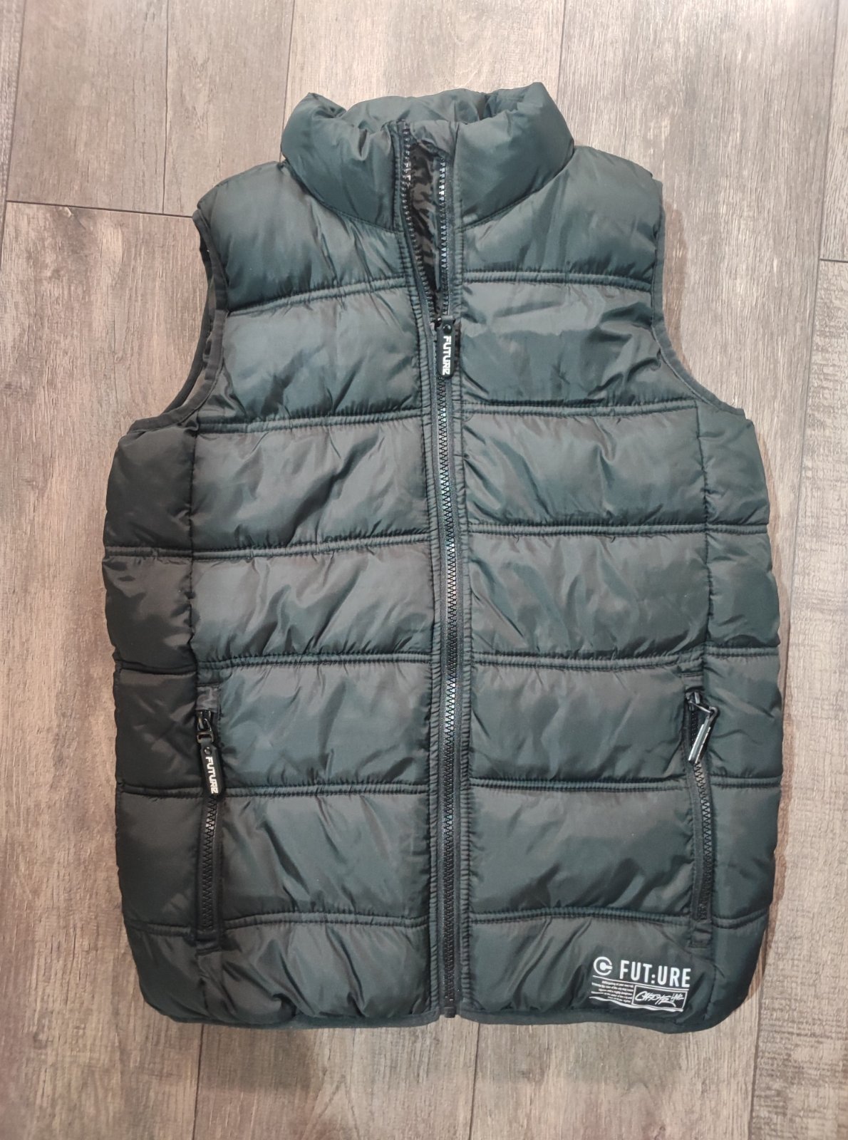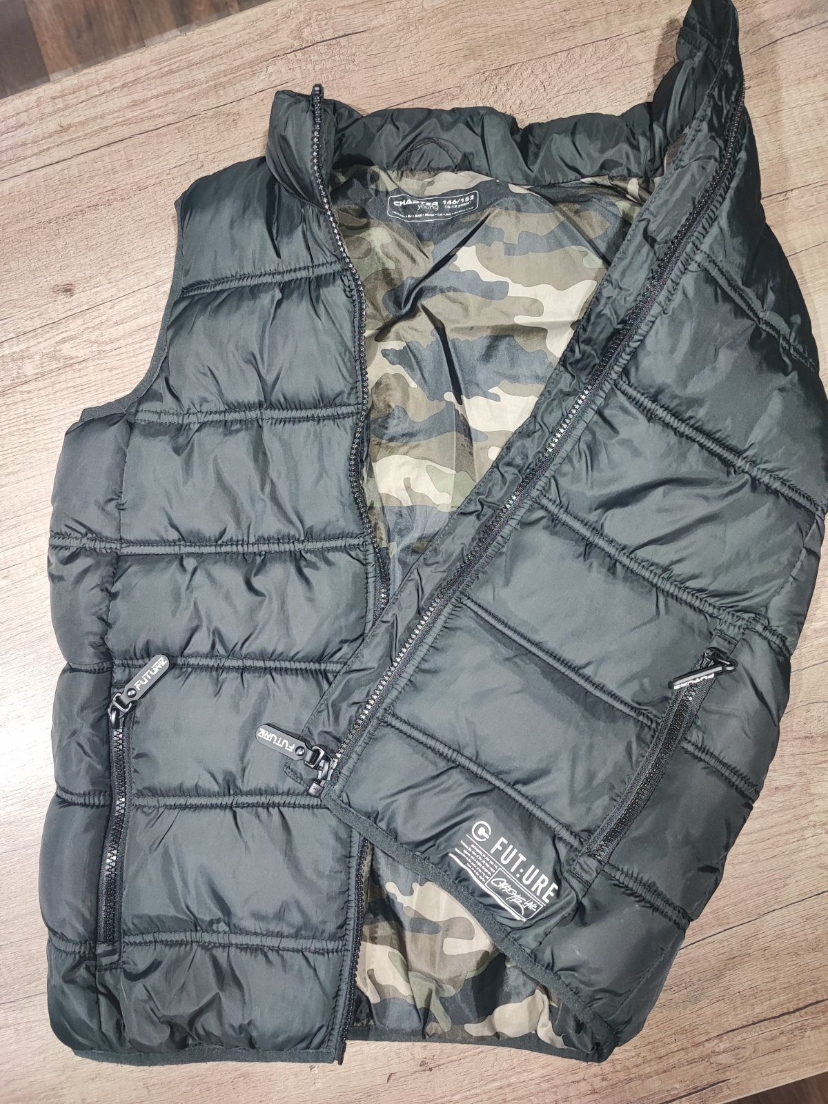 Predám zateplenú vestu,veľkosť 146/152 bez poškodenia,,kapuca sa dá odopnúť.dĺžka 57cm,šírka 49cm