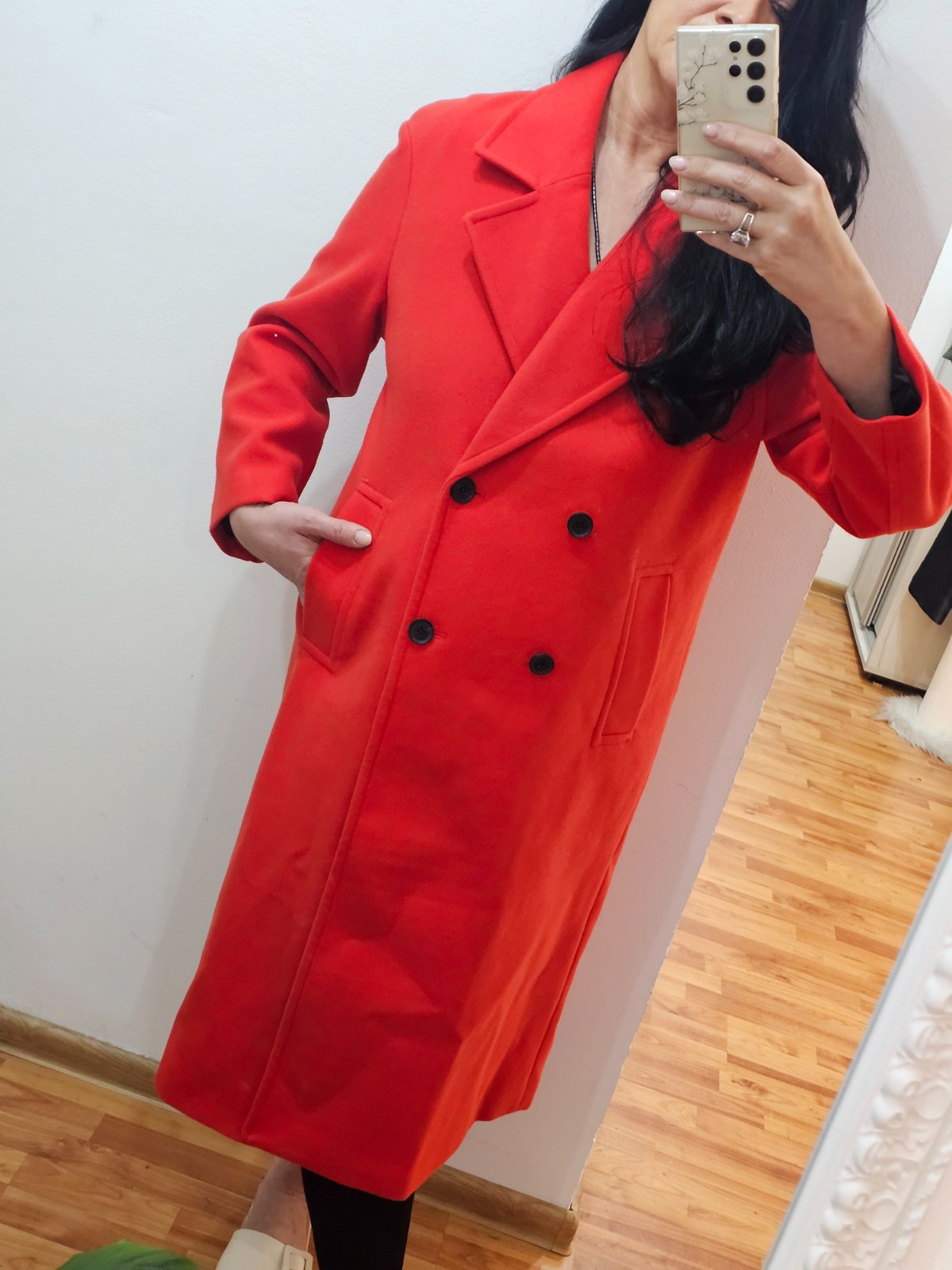 Nádherný červený kabát,veľmi kvalitný žiadna Čína,sestra veľa schudla predávam jej.pc viac