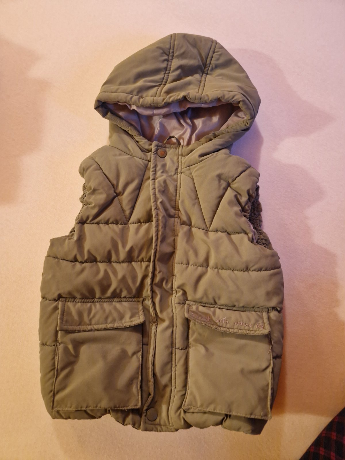 Zateplená vesta značky Reserved vo veľkosti 104, s odopinatelnou kapucňou horcicovej farby. Top stav. Nenosená.