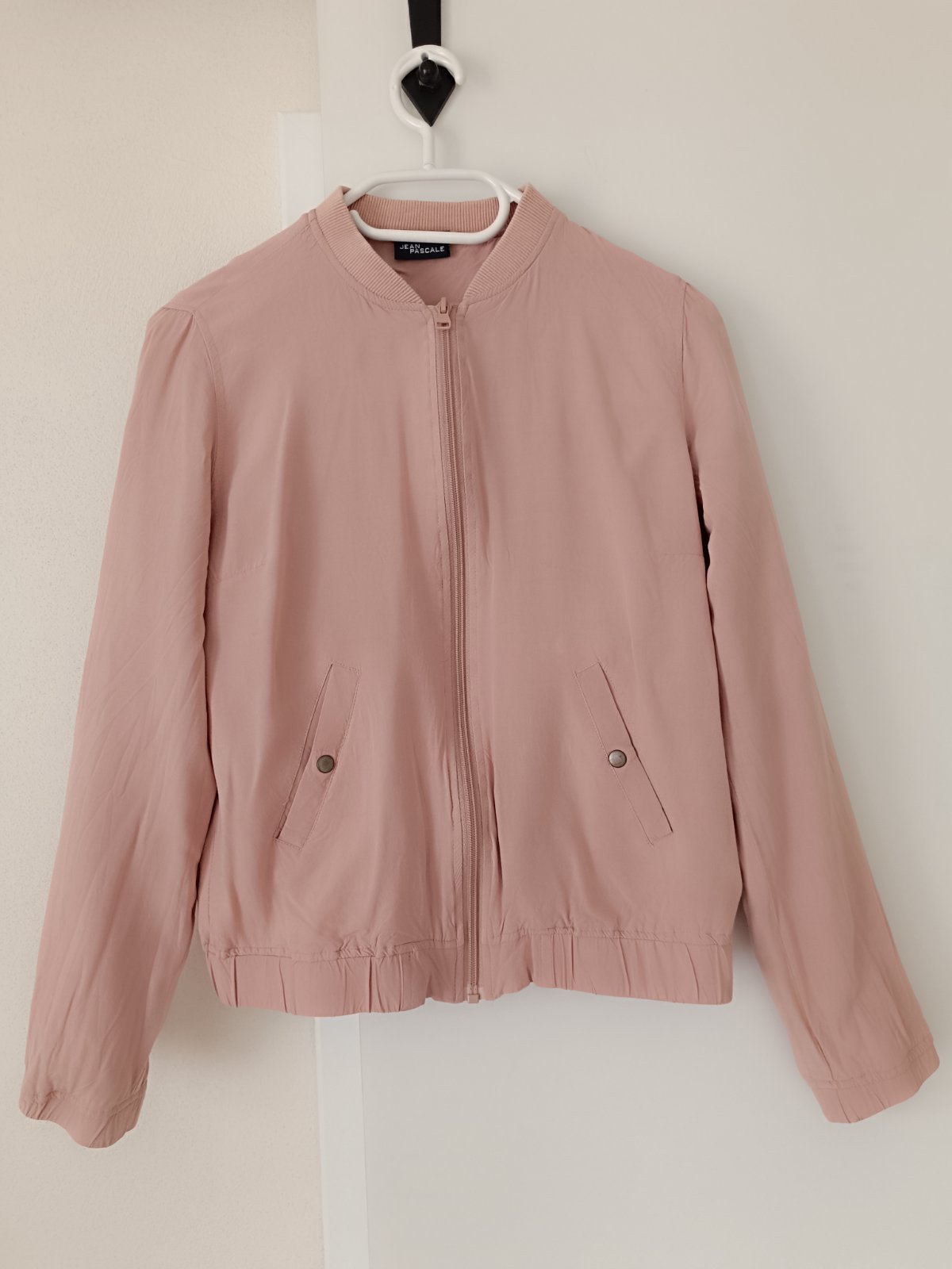 Pudrovoružová tenká bunda s vyšivkami vel.S