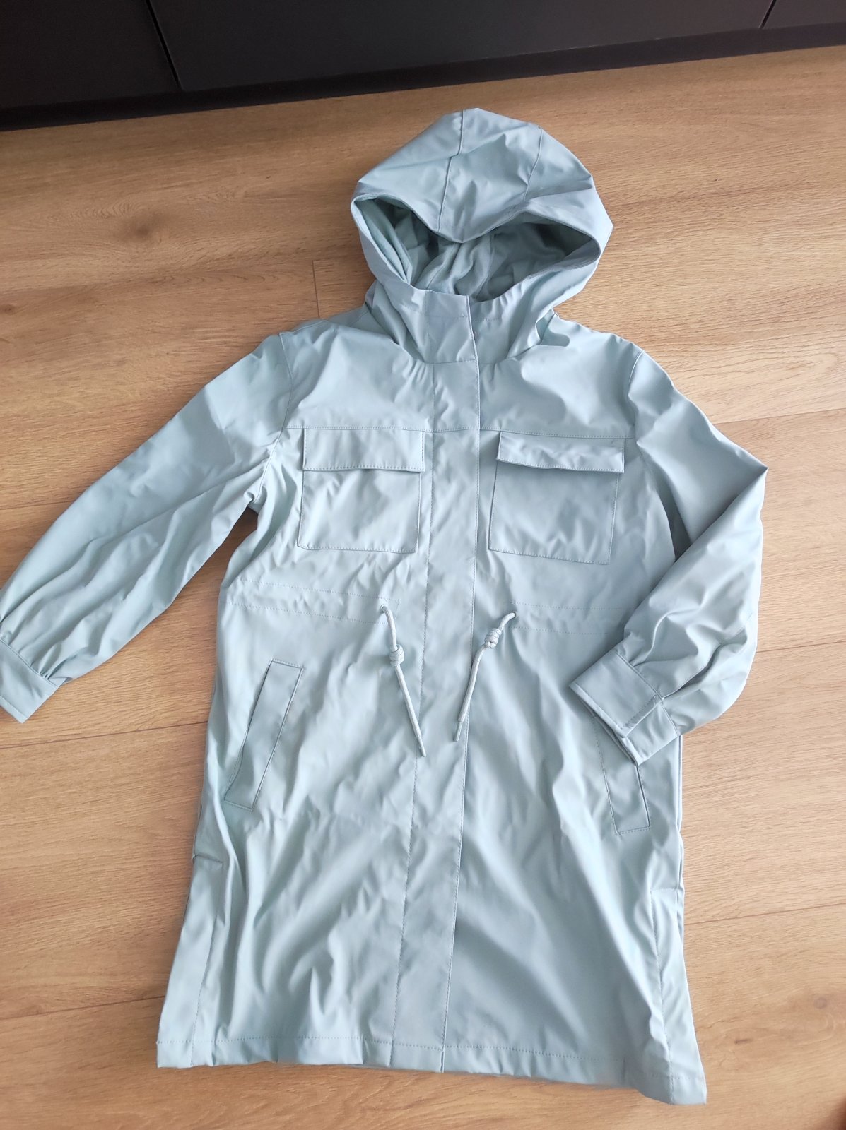 pogumovana dlha bunda,top stav,mintova farba,top stav