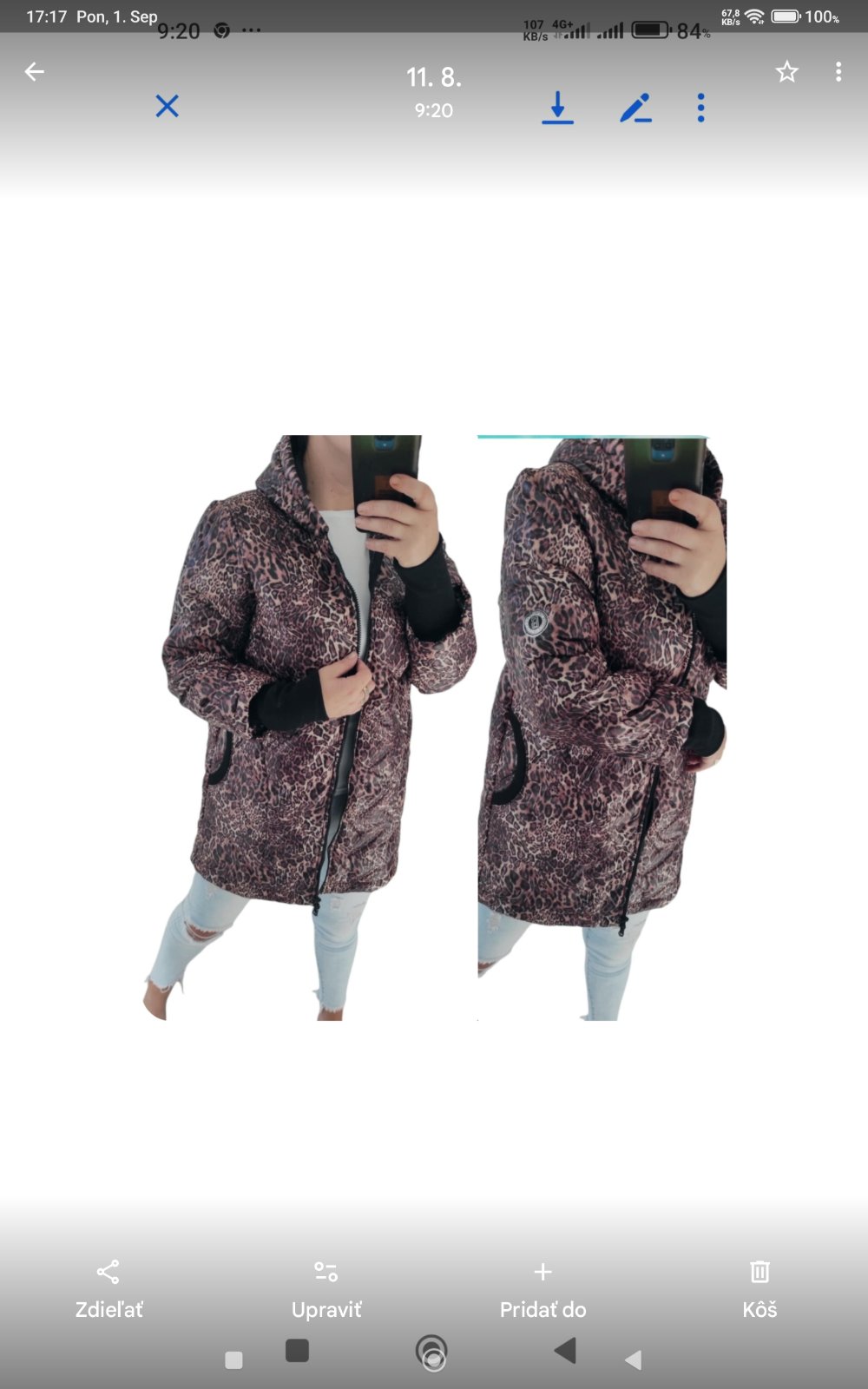 Predám dámsku vetrovku len vyskúšanú ,nesadla mi veľkosť je mi malá..pekná farba tigrí vzor.
