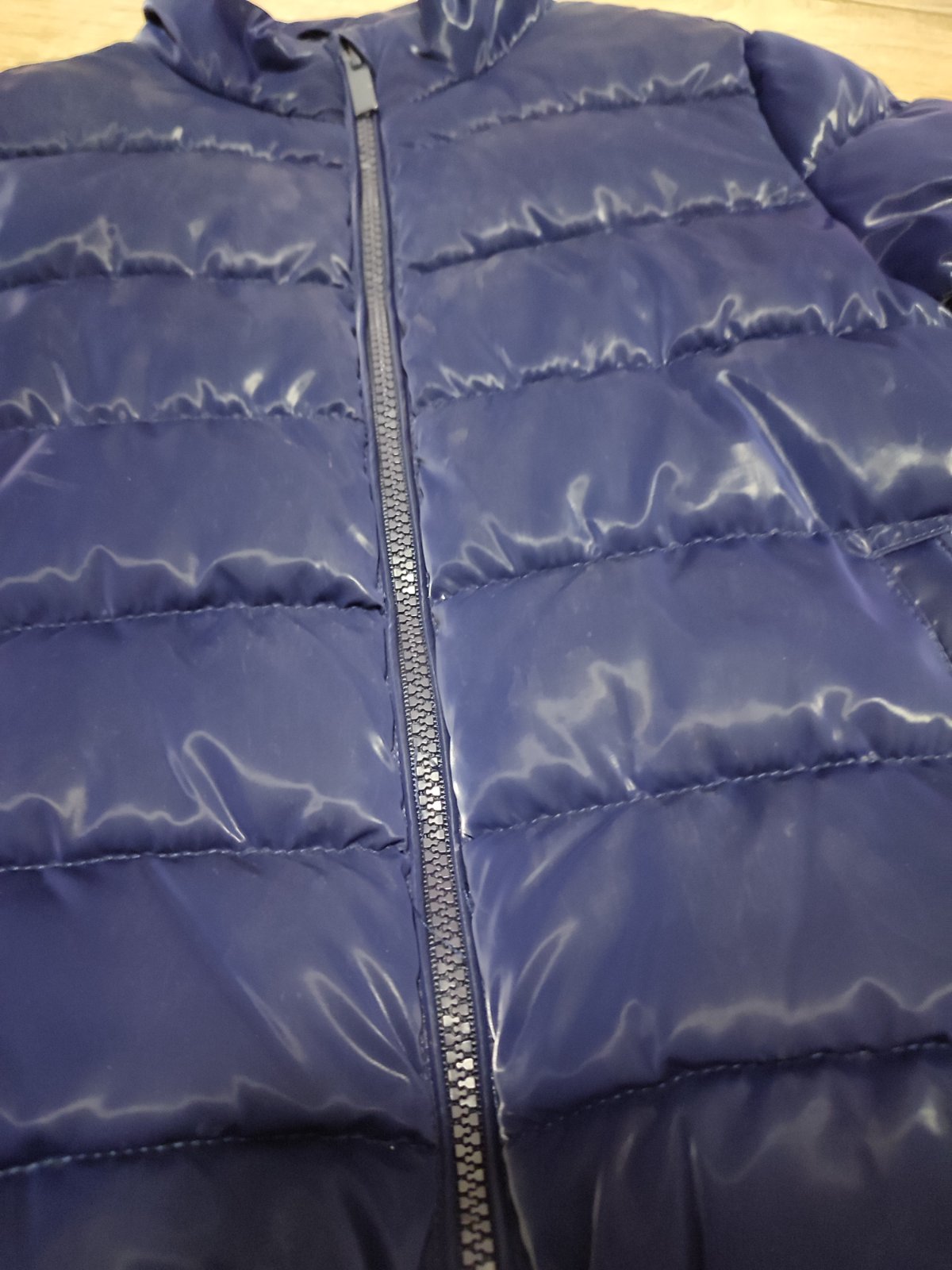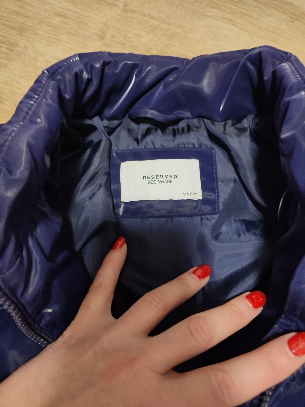 Štýlová krásna prechodná bunda, kľudne aj do chladnejšej jari/jesene. Materiál jemne lesklý, povrch sa dá pri malom zašpinení utrieť handričkou. Veľkosť 116 a tak aj sedí. Bunda je bez chyby, ako nová, nosená 1 obdobie- 3 mesiace.