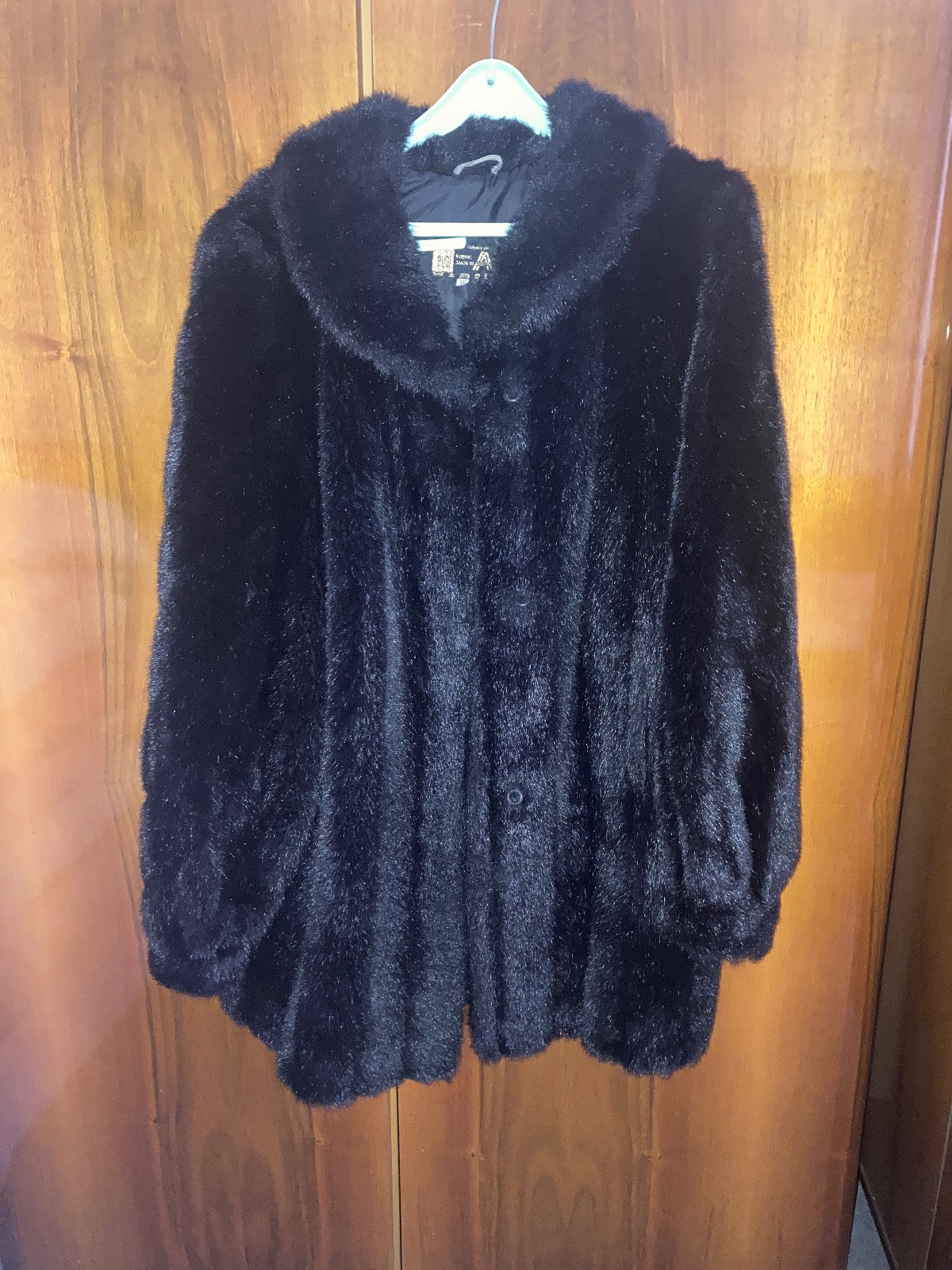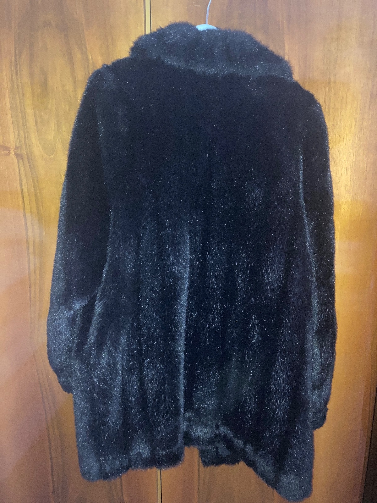 Krásny kozustek čiernej farby, šírka cez prsia 60, dĺžka 86 cm.