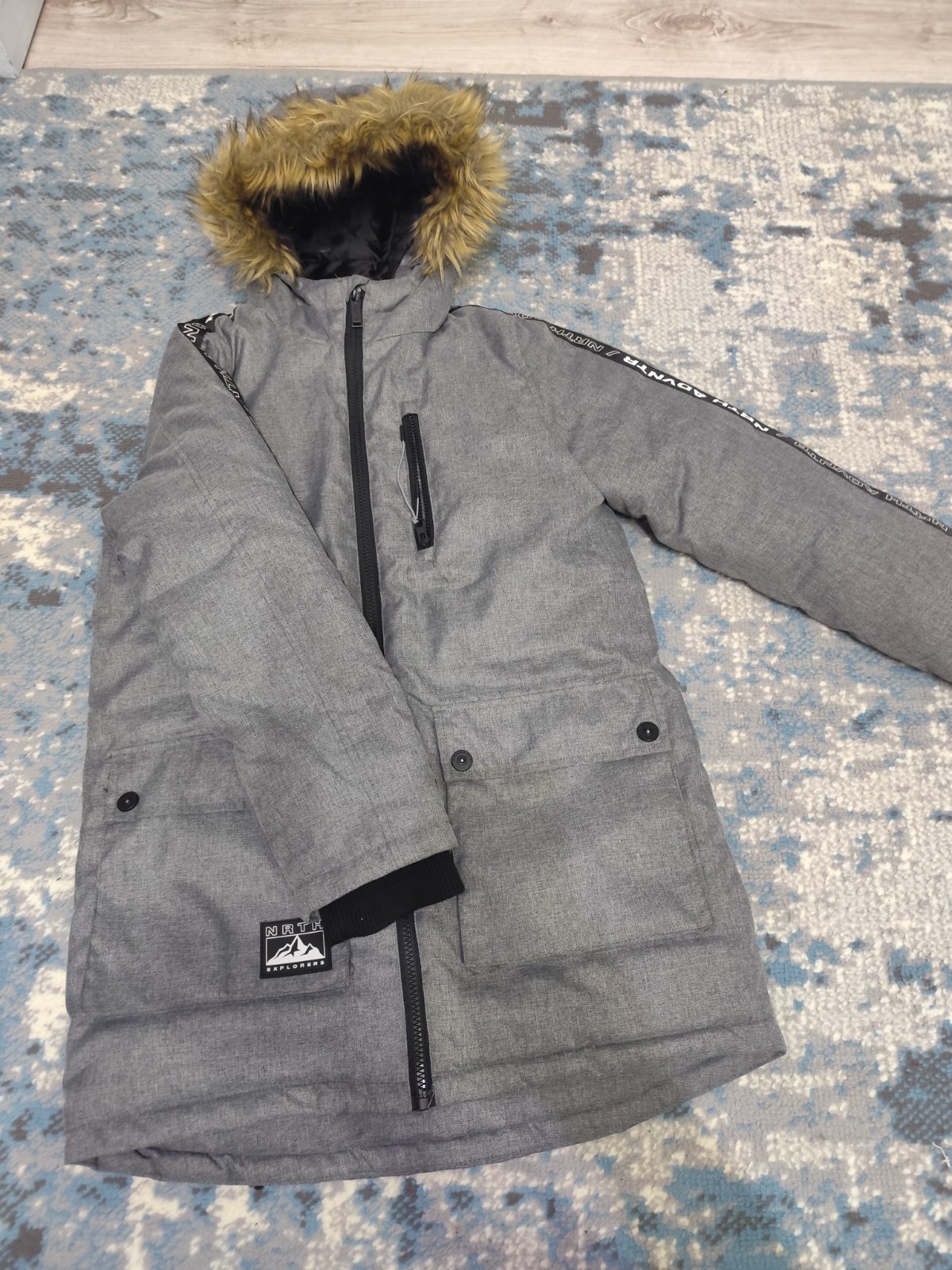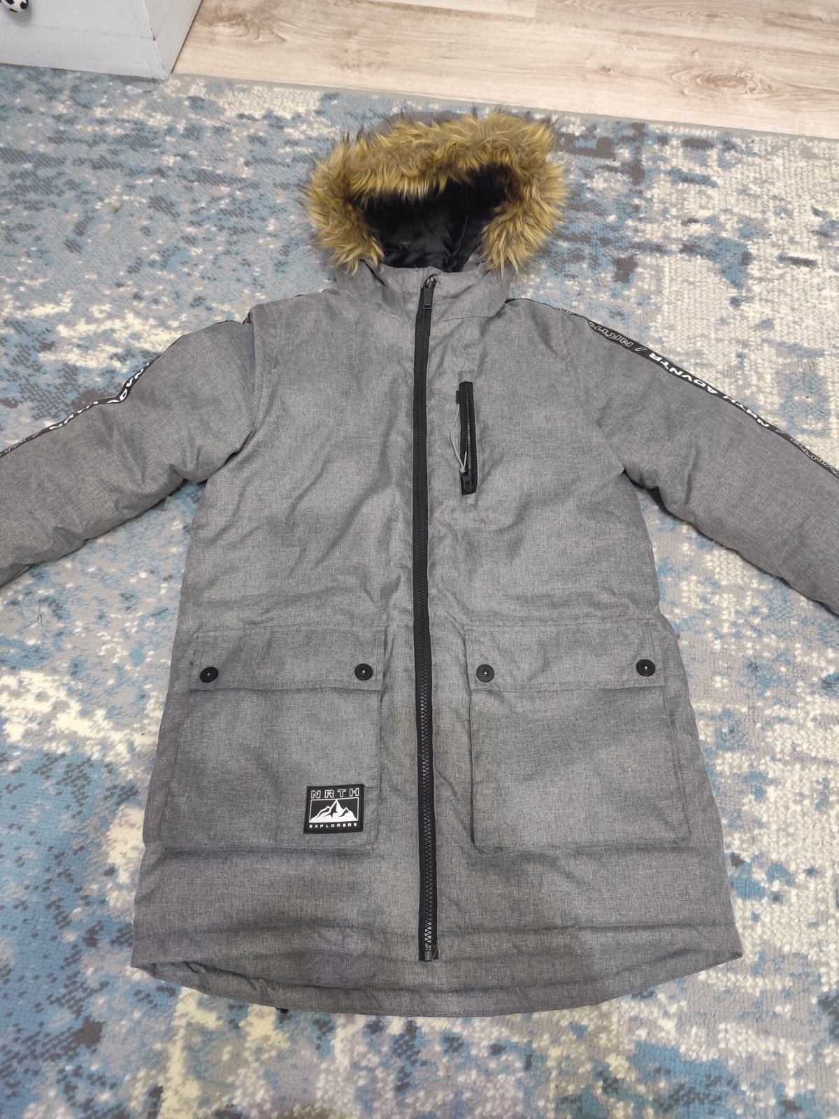 Bunda velmi funkcna. Spokojnost. Male chybicky krasy nafotrne. Na oboch rukavoch z vnutornej strany. Jemne roztrhnute na konci zpredu v bundy. Vsetko nafotene. Ale este verim ze niekomu velmi pros...