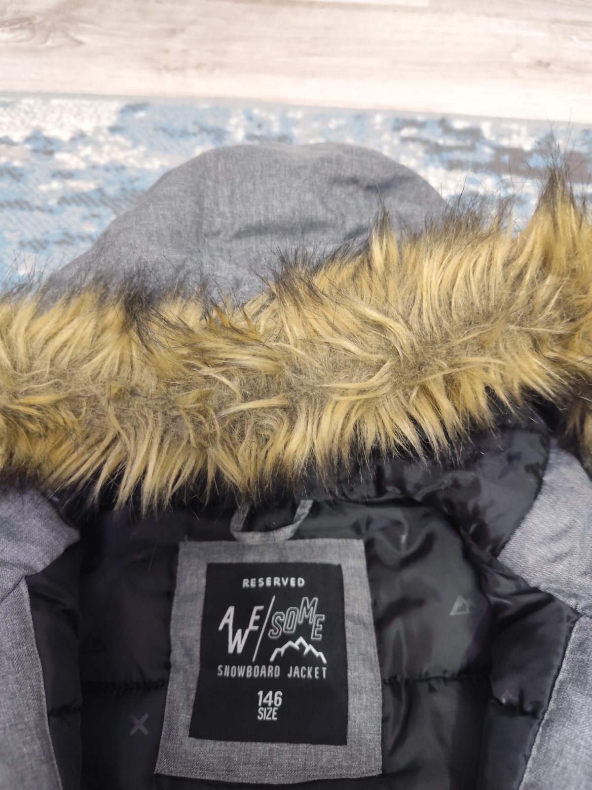 Predám zimnú bundu nosení len mojim synom č. 146 zn. Reserved. Dĺžka 65 cm Šírka 50 cm Dĺžka Rukáv od ramena 52 cm Dĺžka Rukáv od ramena 62 cm