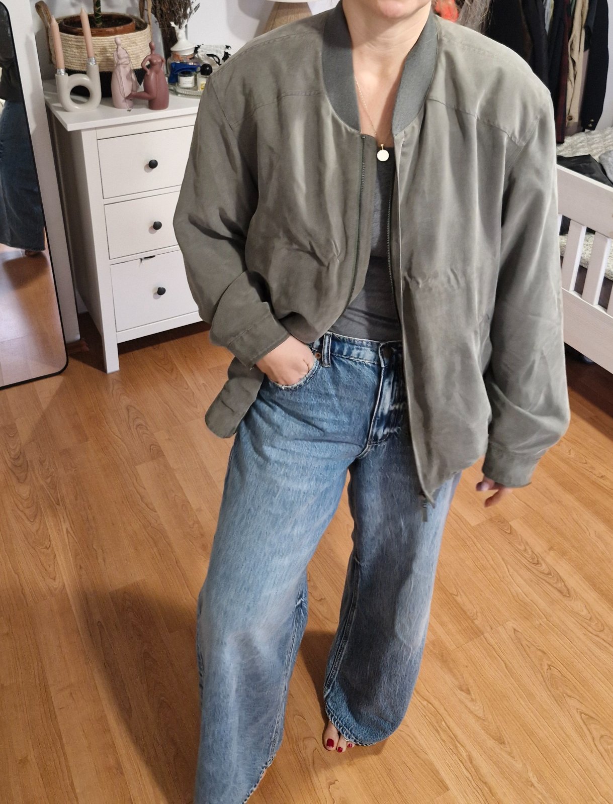 Oversize nadcasovy kusok, 100% hodvab, jemne logo. Sadne oversize damy M-XL, pani cca L