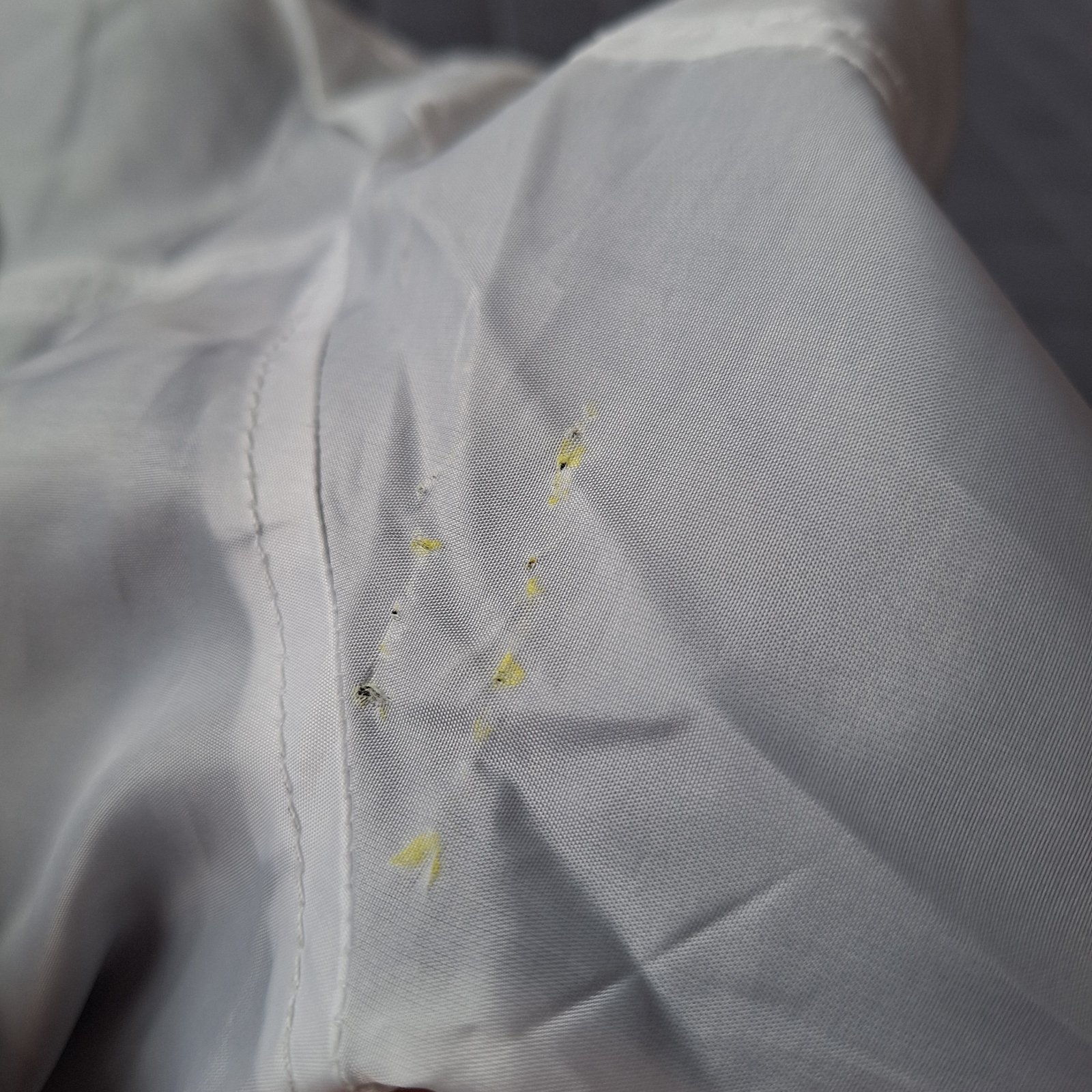 Na zadnej strane pravého rukáva má malé poškodenie (viď posledná fotka) - svetlé žlté fliačiky a malé dieročky (fakt netuším ako k nim dieťa prišlo). Cena tomu prispôsobená.