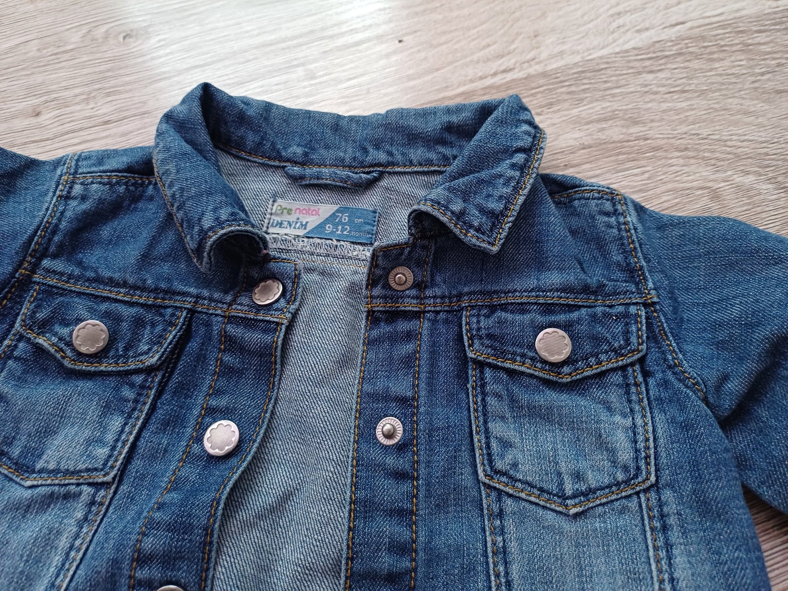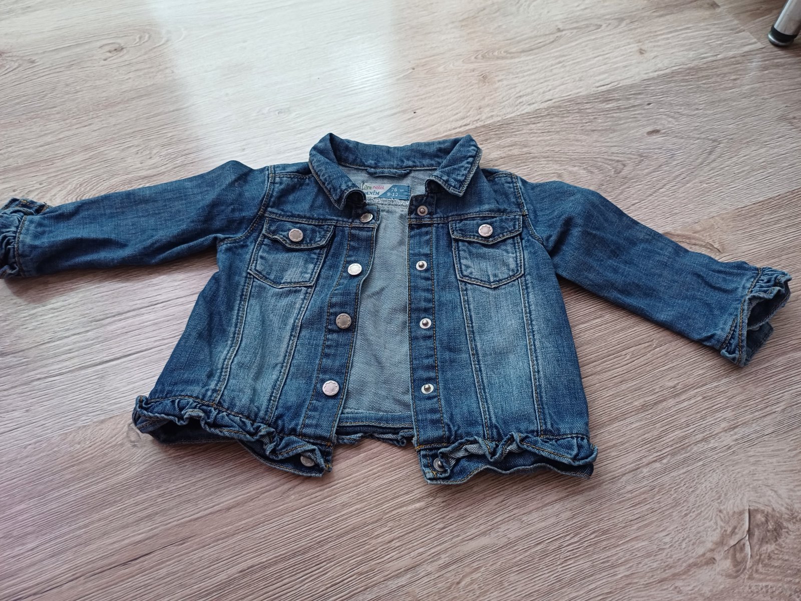 Riflová bundička V top stave Veľkosť: 80 Cena: 7 € + poštovné Dĺžka rukáva od goliera: 33,5 cm Dĺžka rukáva od ramena: 28cm Dĺžka od ramena dole: 29cm Šírka pod pazuchami: 30 cm