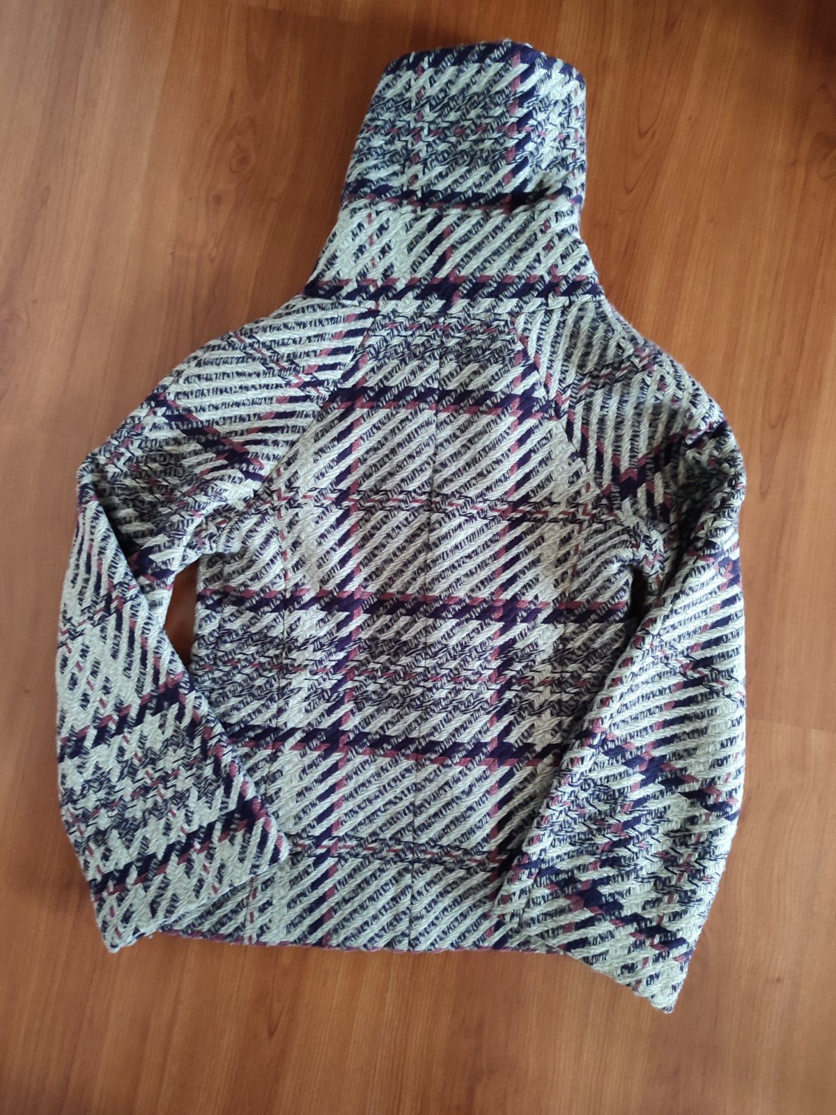 nosený, ale zachovalý, veľkosť 36, bez poškodení, miestami trochu žmolky, treba odžmolkovať, ale určite je zachovalý a ešte nositeľný Skôr na vyššiu postavu Reálna farba kabáta je na foto na posta...