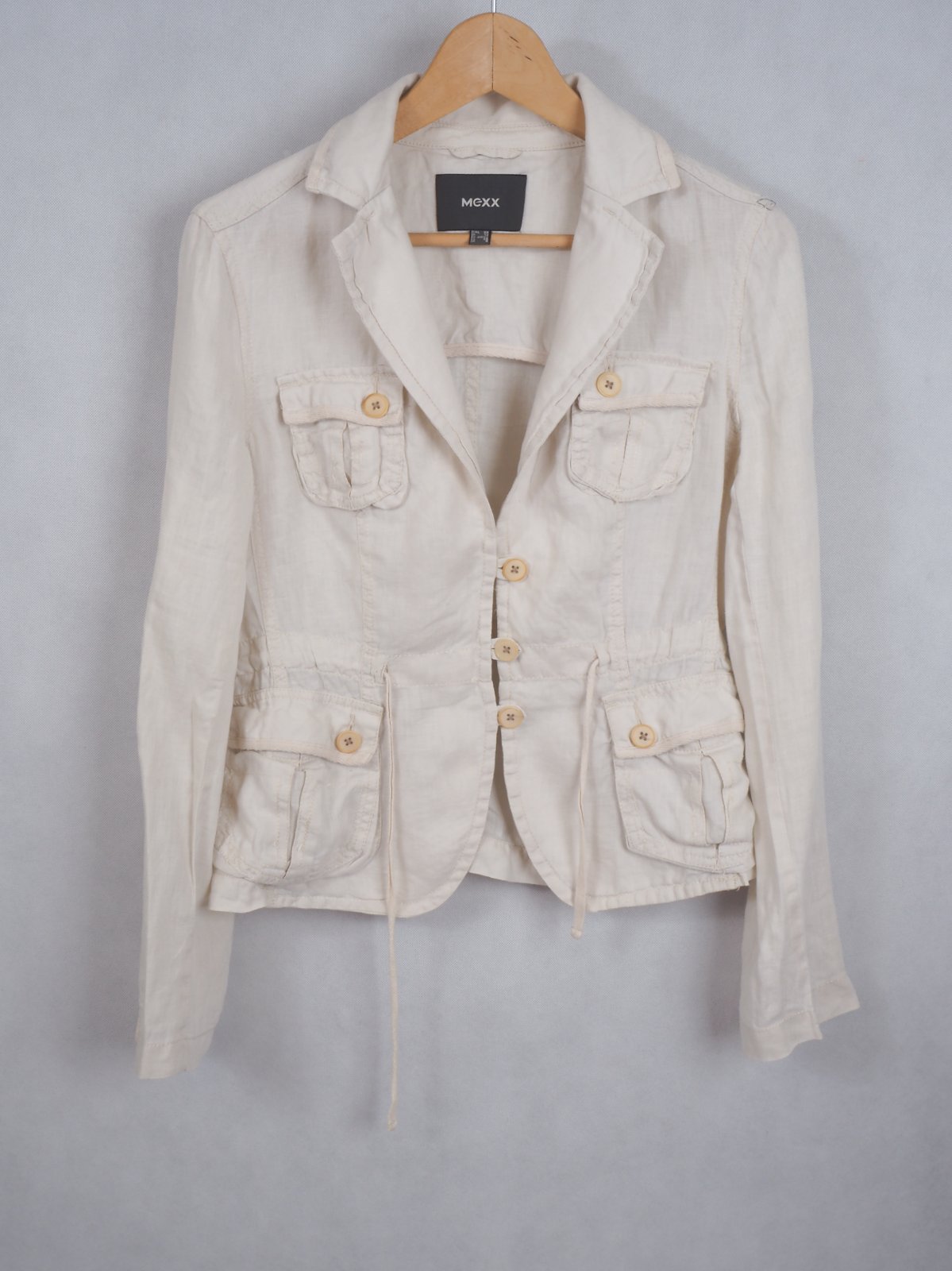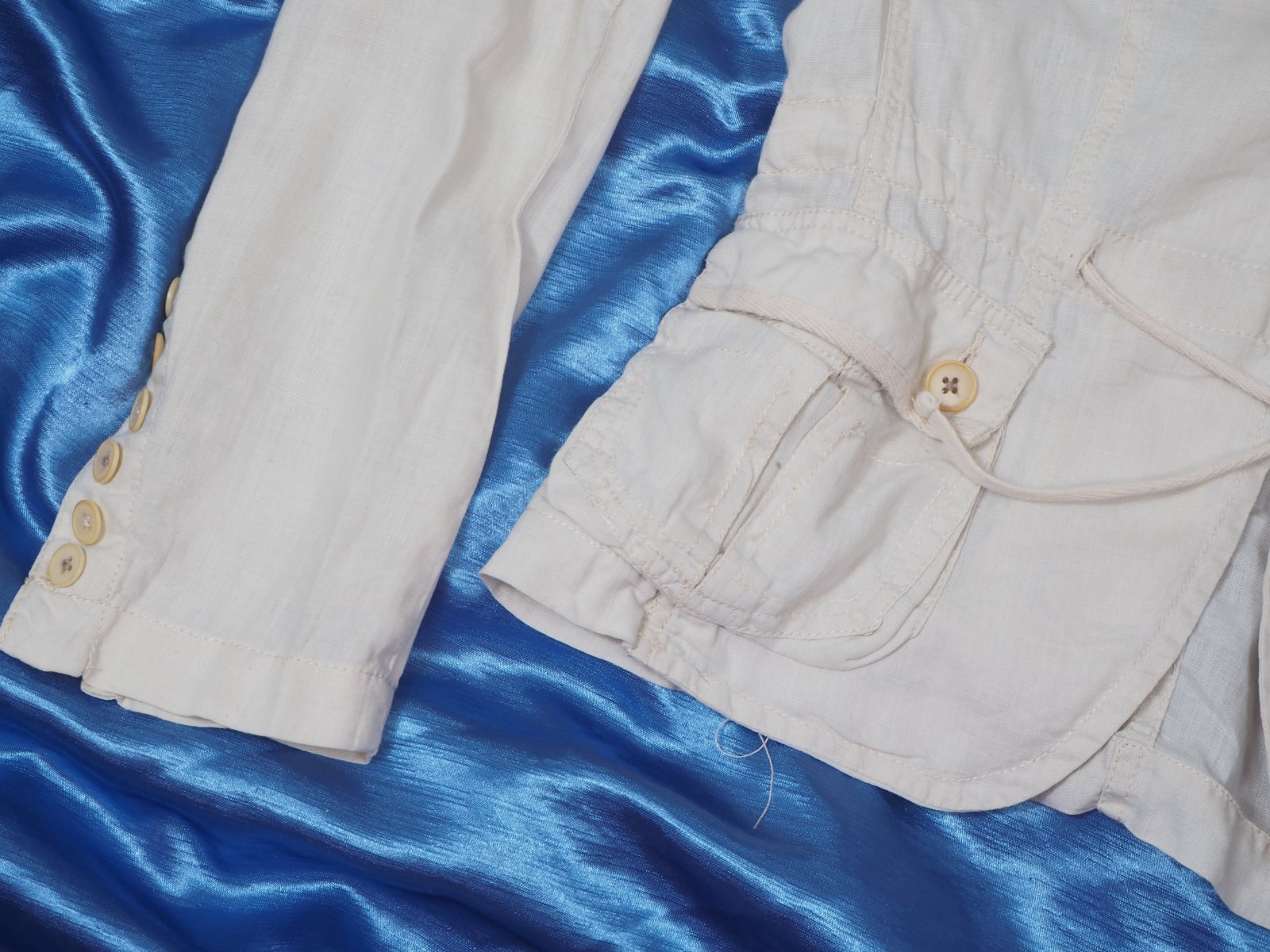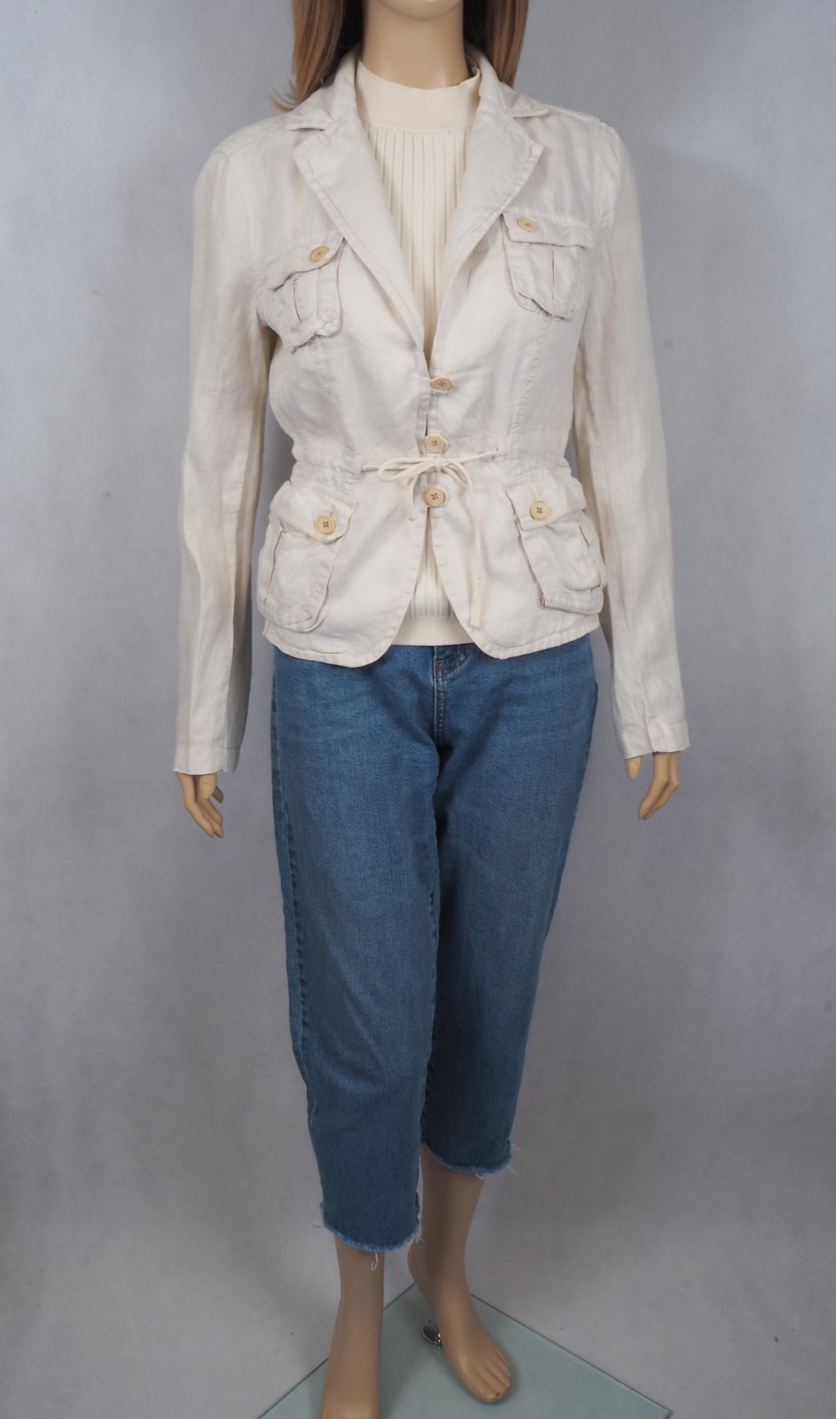 Kvalitné ľanový blejzer, so zapínaním na gombíky, bez podšívky, materiál 100% ľan, super stav.