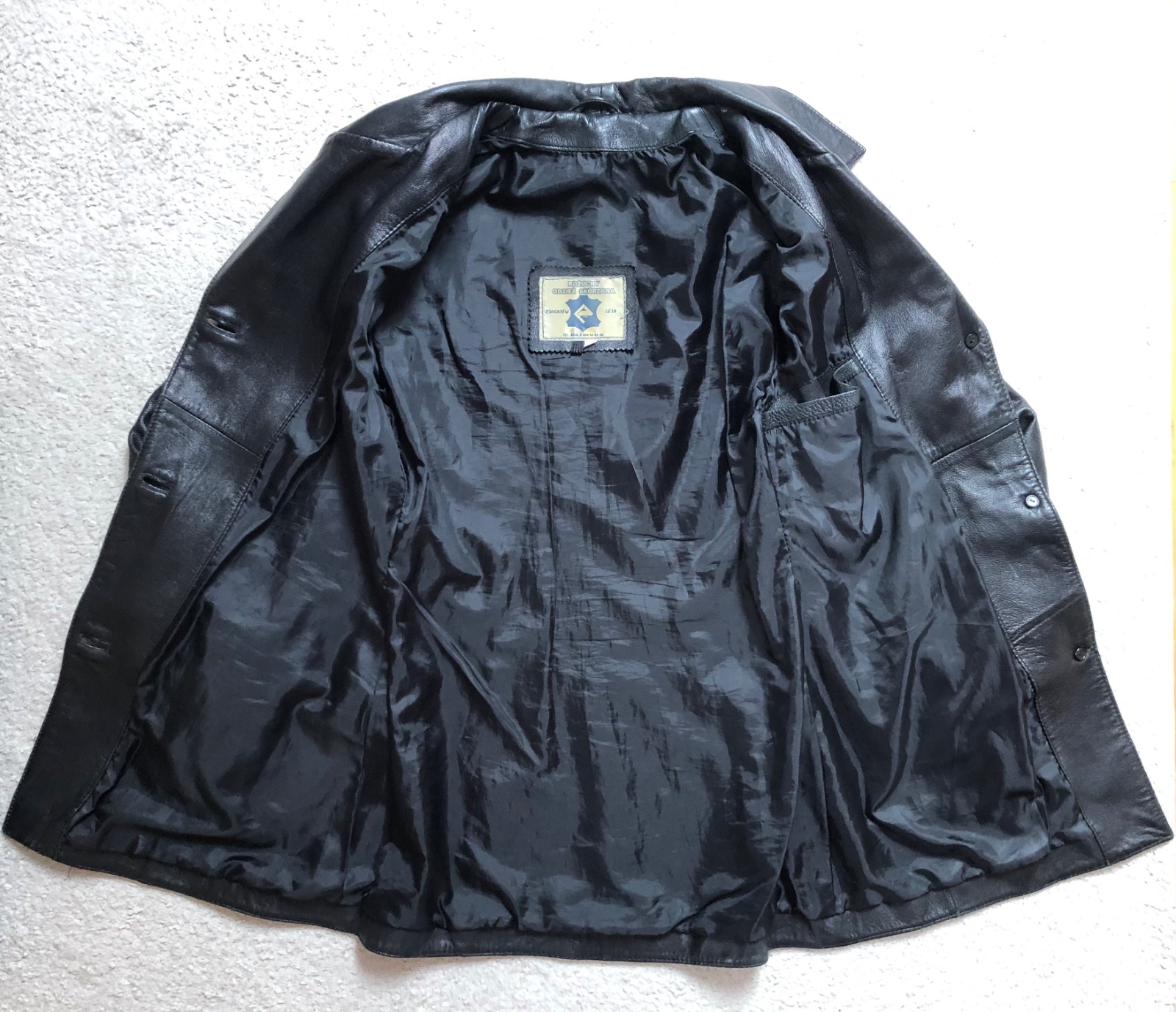 Predam kvalitne kozene cierne sako/prechodny kabat, velkost pisana M, ale sedi na S, rozmery: sirka pod pazuchami: 46cm, dlzka rukava od pleca: 59cm, celkova dlzka od krku: 77cm. Super noseny stav.