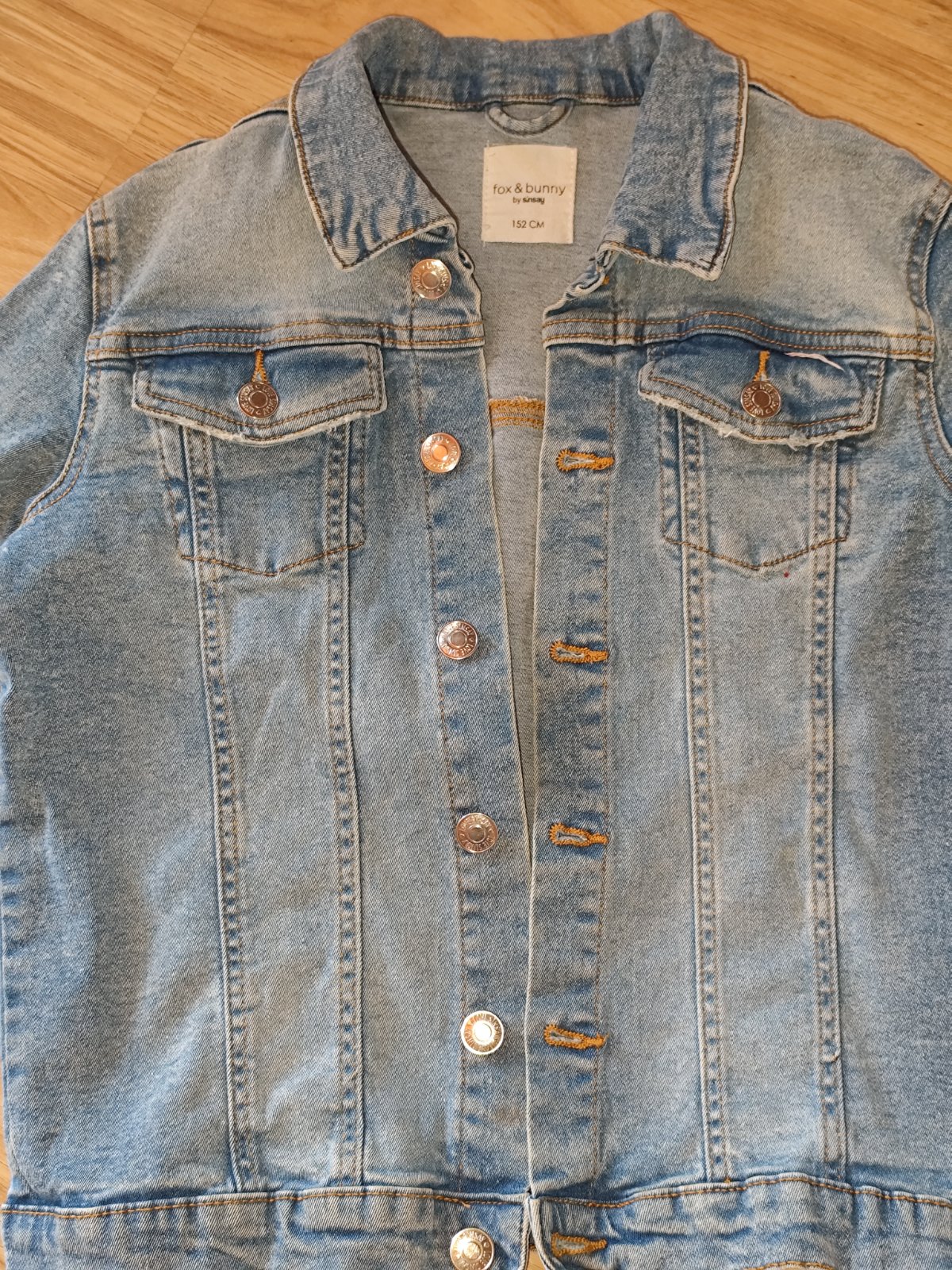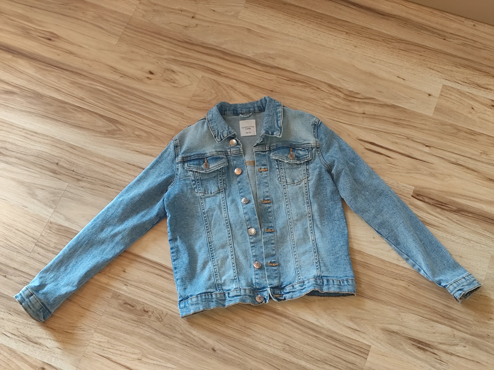 Makka svetlomodra riflova bunda, oblecena parkrat, bez poskodenia