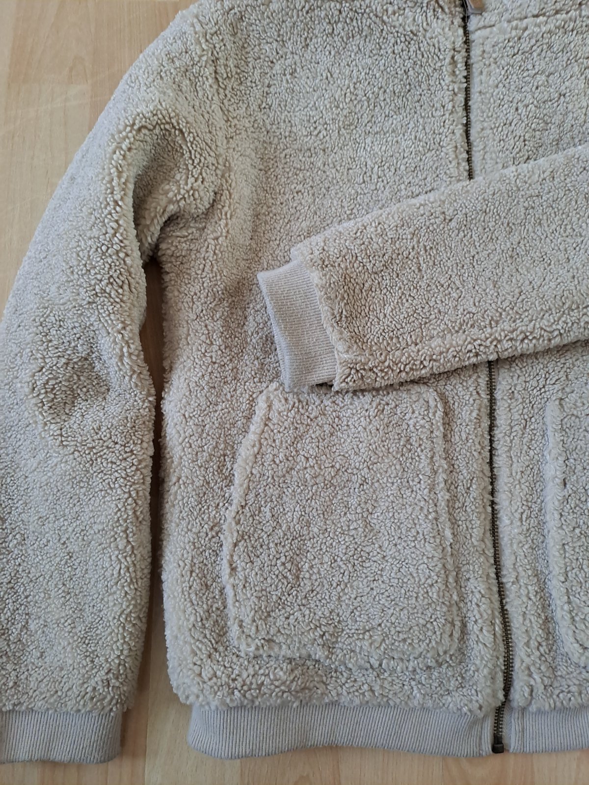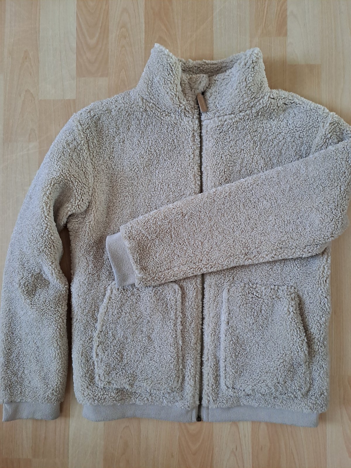 Jeden krát oblečený kabátik, jednovrstový, kapucňa sa dá dať dole