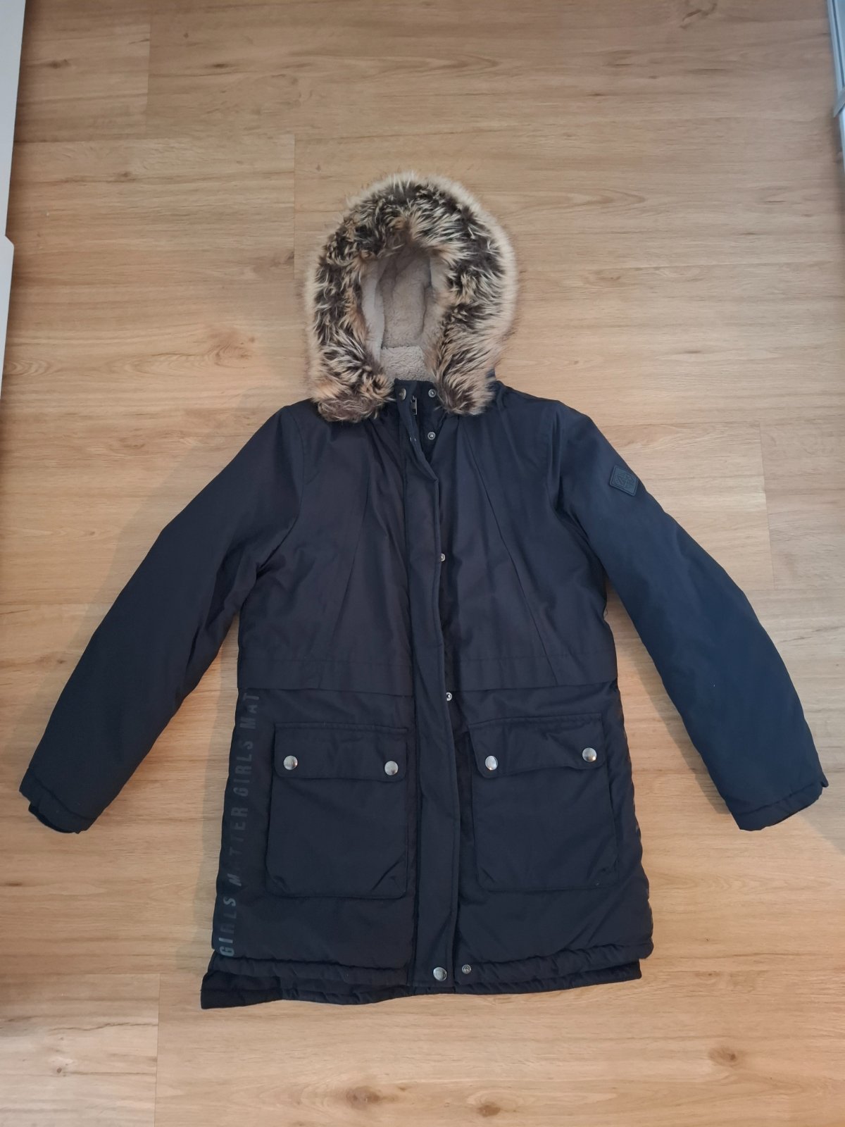 Predám dievčenskú zimnú bundu, príjemnú, teplú, army style, kapucňa vyšitá, skvelo sedí. 2 vonkajšie vrecká Nosena jednu sezónu.