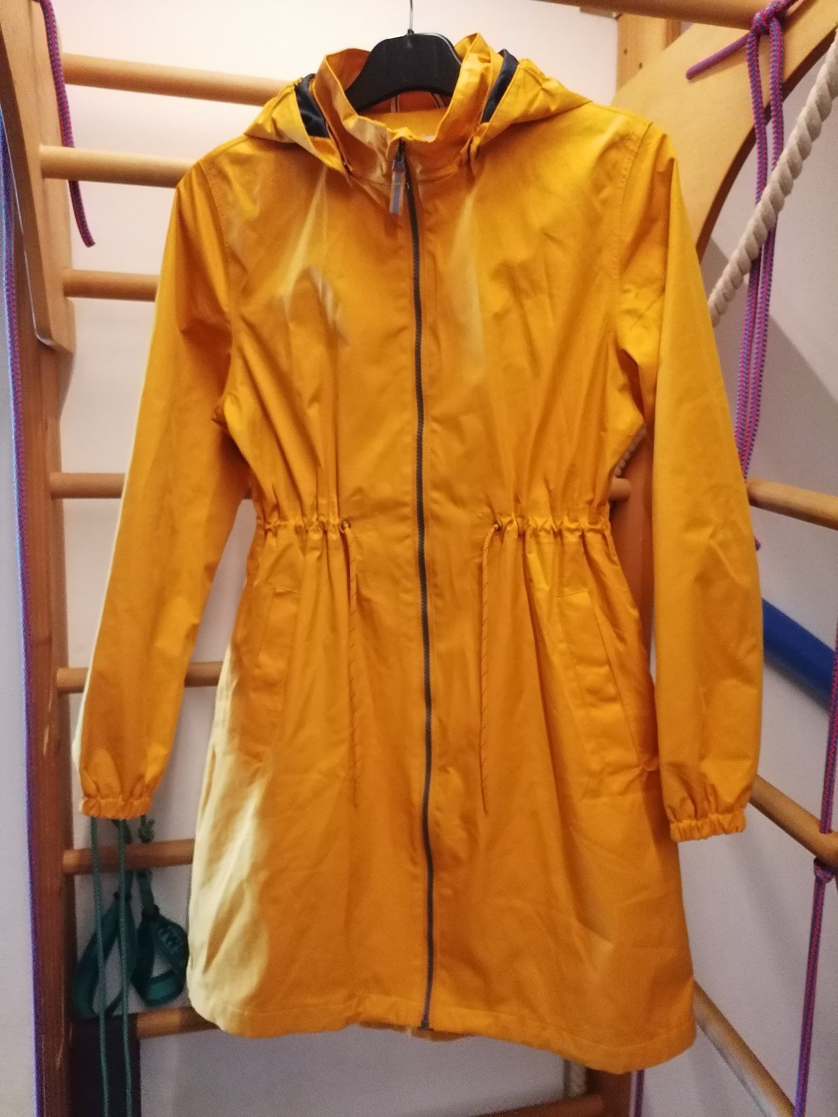 Predam takmer nenoseny nepremokavy kabat, 3/4 dlzka, farba pekna horcicovozlta. Nie je zatepleny, len nepremokavy s membranou.