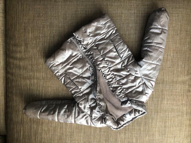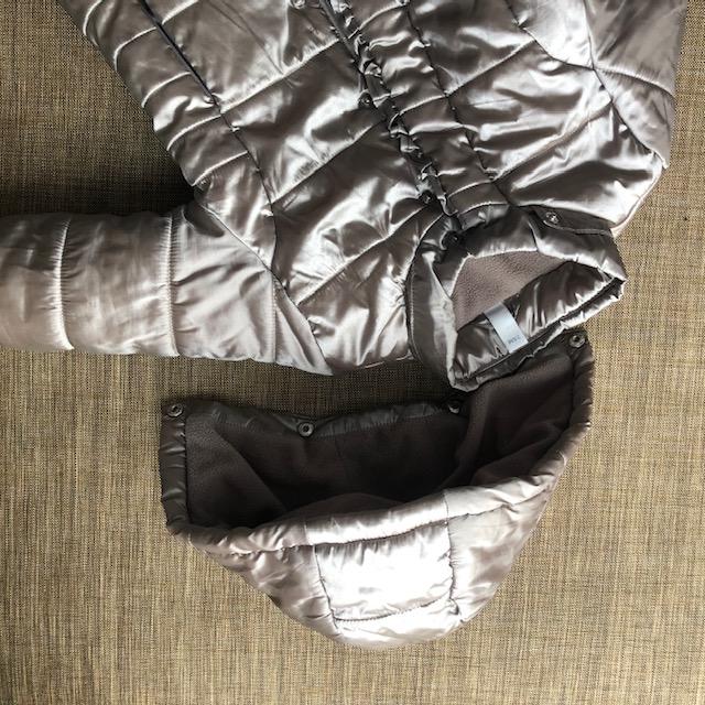 Top stav,zaujímavá bundička 2v1,vnútorná sa dá odopnúť a máte bomberku.kapucka odopínateĺná,dl.37cm.oh 33x2,pás 29x2,je tam guma,ruk.od krku 42cm.od pleca 35cm. Vn.bundička dl.31cm.