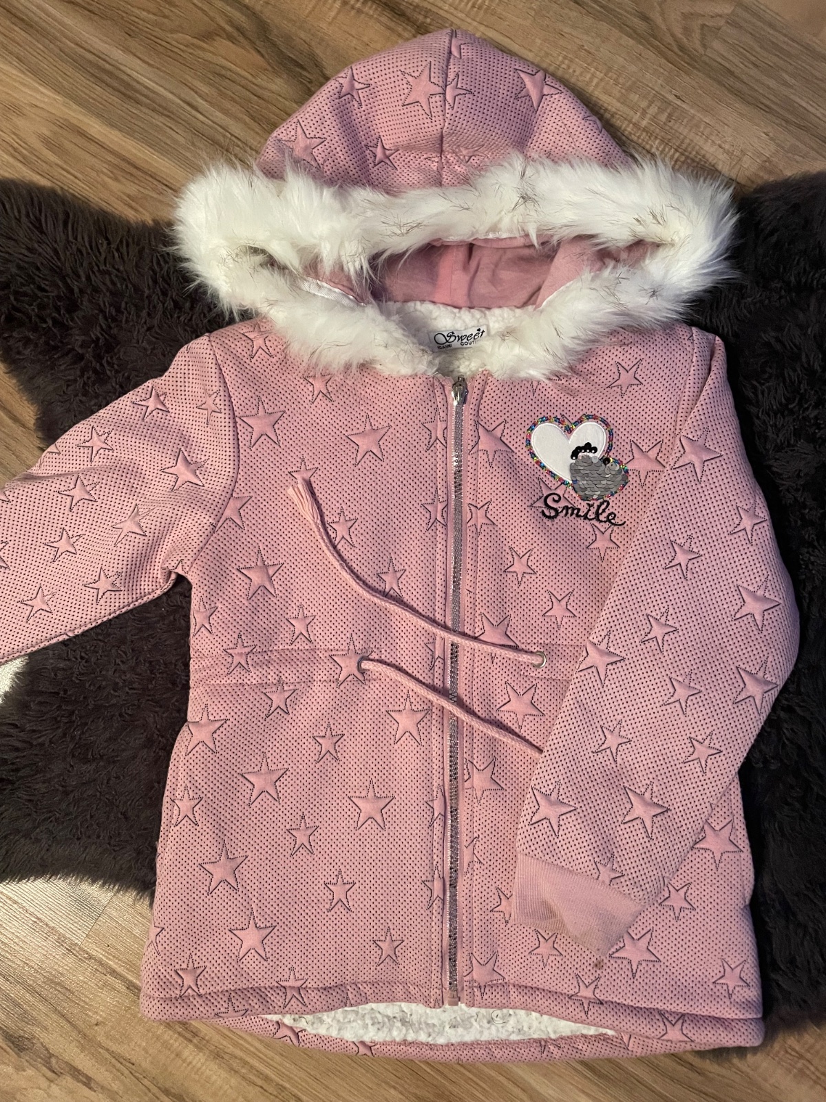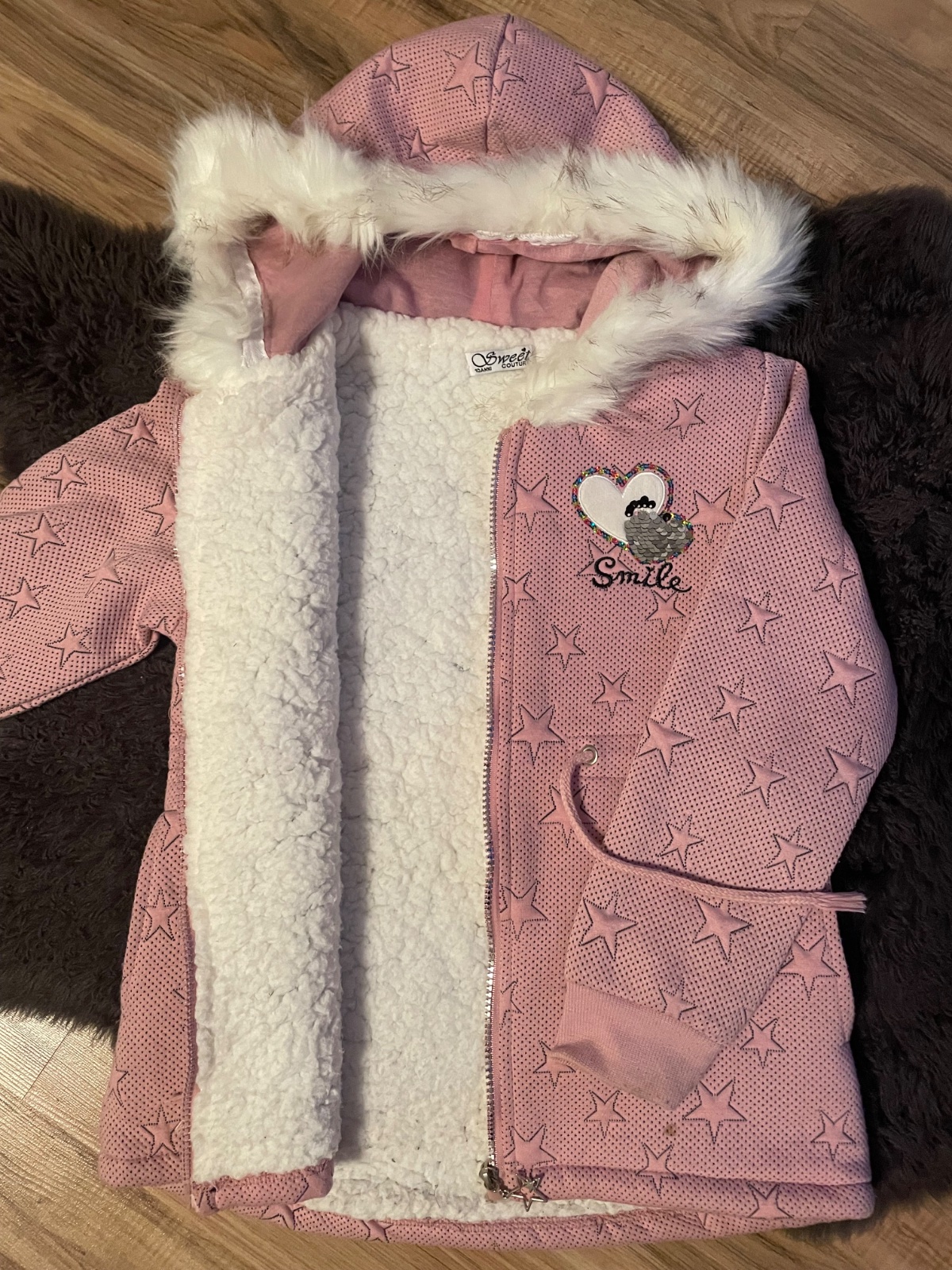 Minimálne nosený ako nový bez známok používania, veľmi teplý veľkosť sadne na 4-6 rokov