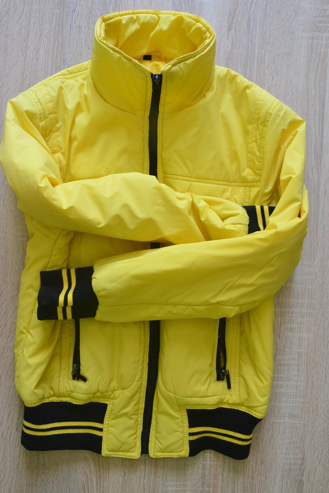 Nieje a taká kriklava, je taká pekné žltá ☺️vačky na zips, nosená v krásnom stave, vnútro menší kúsok zašite, začalo sa parať je to v pohode