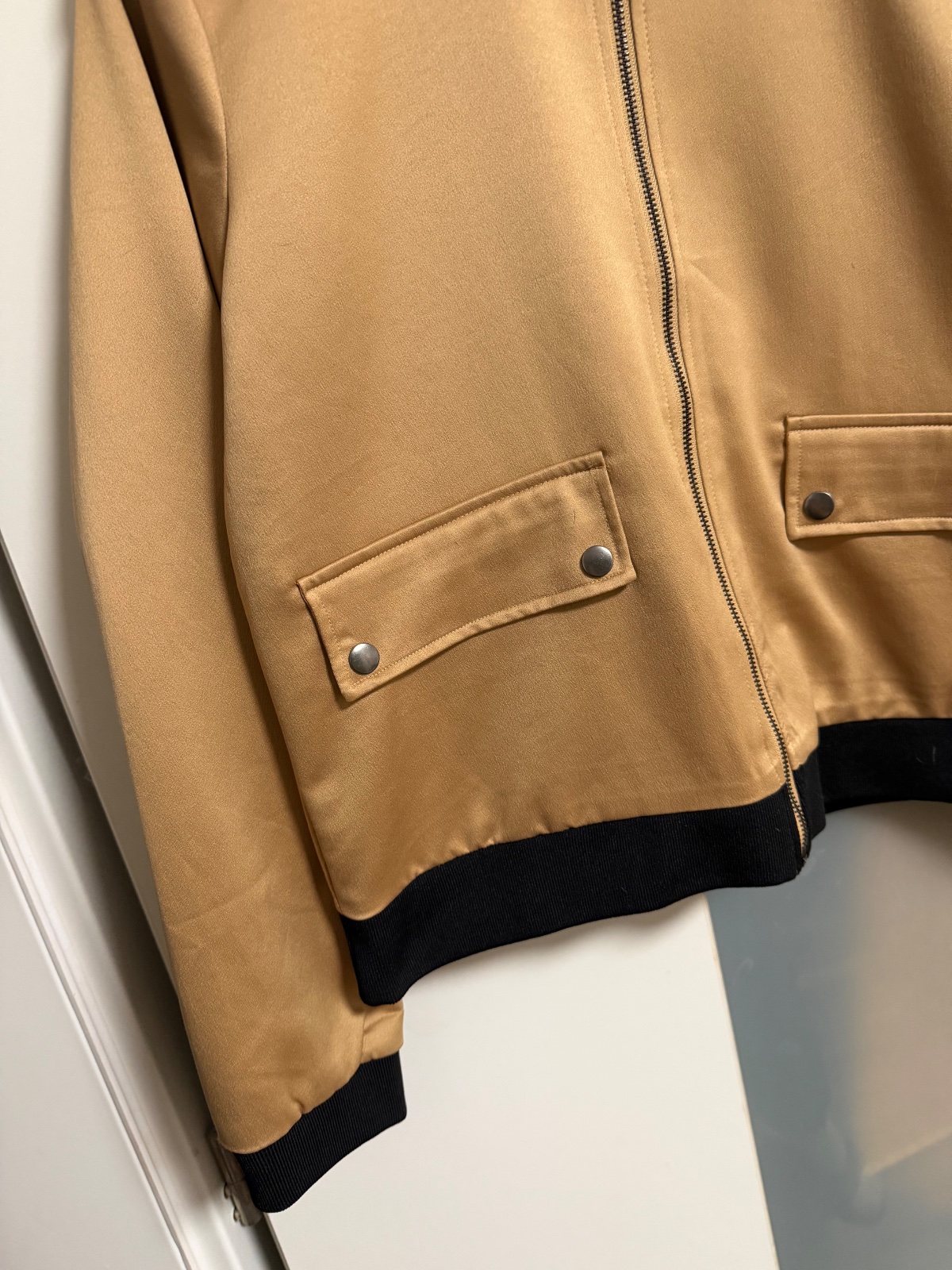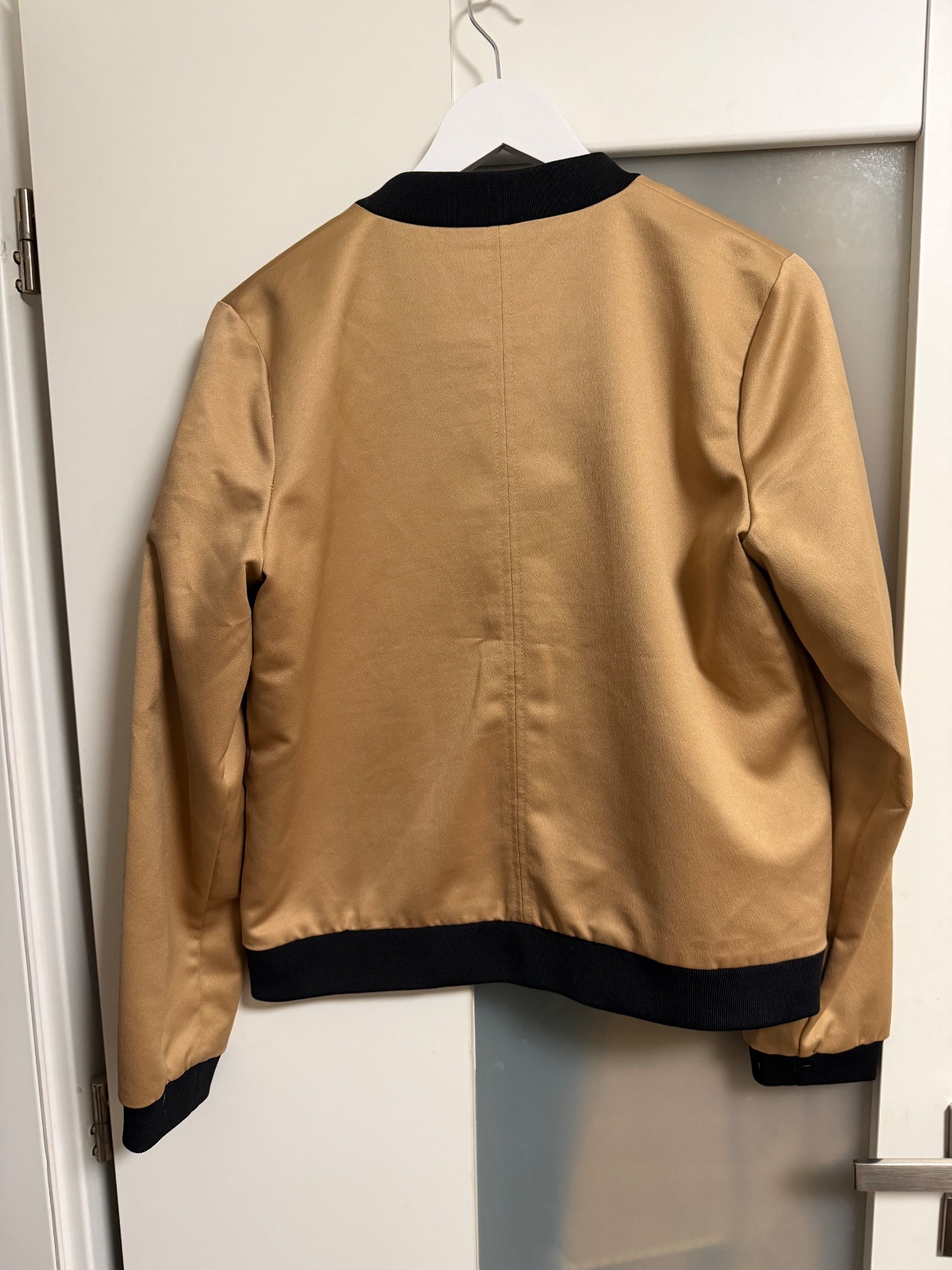Top stav, oblečená pár krát, pevný hrubší zlatý saten, krásna elegantná, dl.59, š.53, rukáv 12+64, dole klude 49