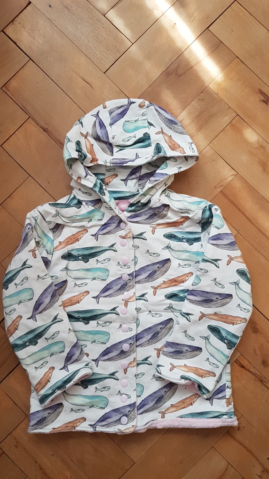 Jednofarebne alebo vzorové. Kabátik strihaný v páse alebo s rovnými prednými dielmi a nariaseným zadným. Vrecká a mašle v cene kabátika, uši zajko za príplatok +1€ (Menšie macko alebo mačičkove uš...