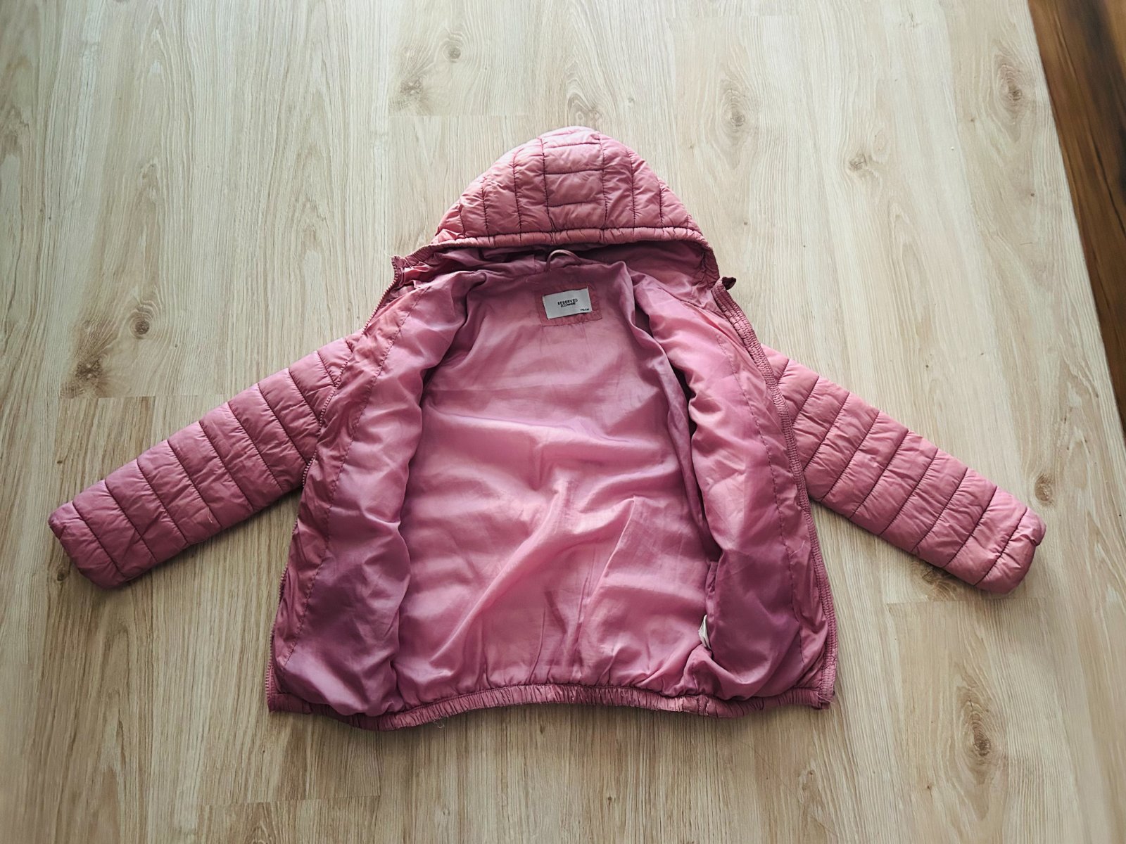 Predám túto krásnu prešívanú bundu značky RESERVED vo veľkosti 140. Bunda má veľkú kapucňu so stojačikom, zapínanie na zips, dve bočné vrecká na zips. Spodný okraj a manžety sú s pásikavým lemom. Bunda bola nosená na striedačku s inými bundami, je v dobrom stave, akurát niekde trčia niťky, ale je to len taký malinký estetický nedostatok, nemá to žiadny vplyv na funkčnosť.