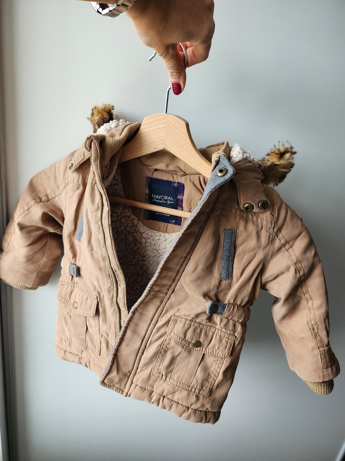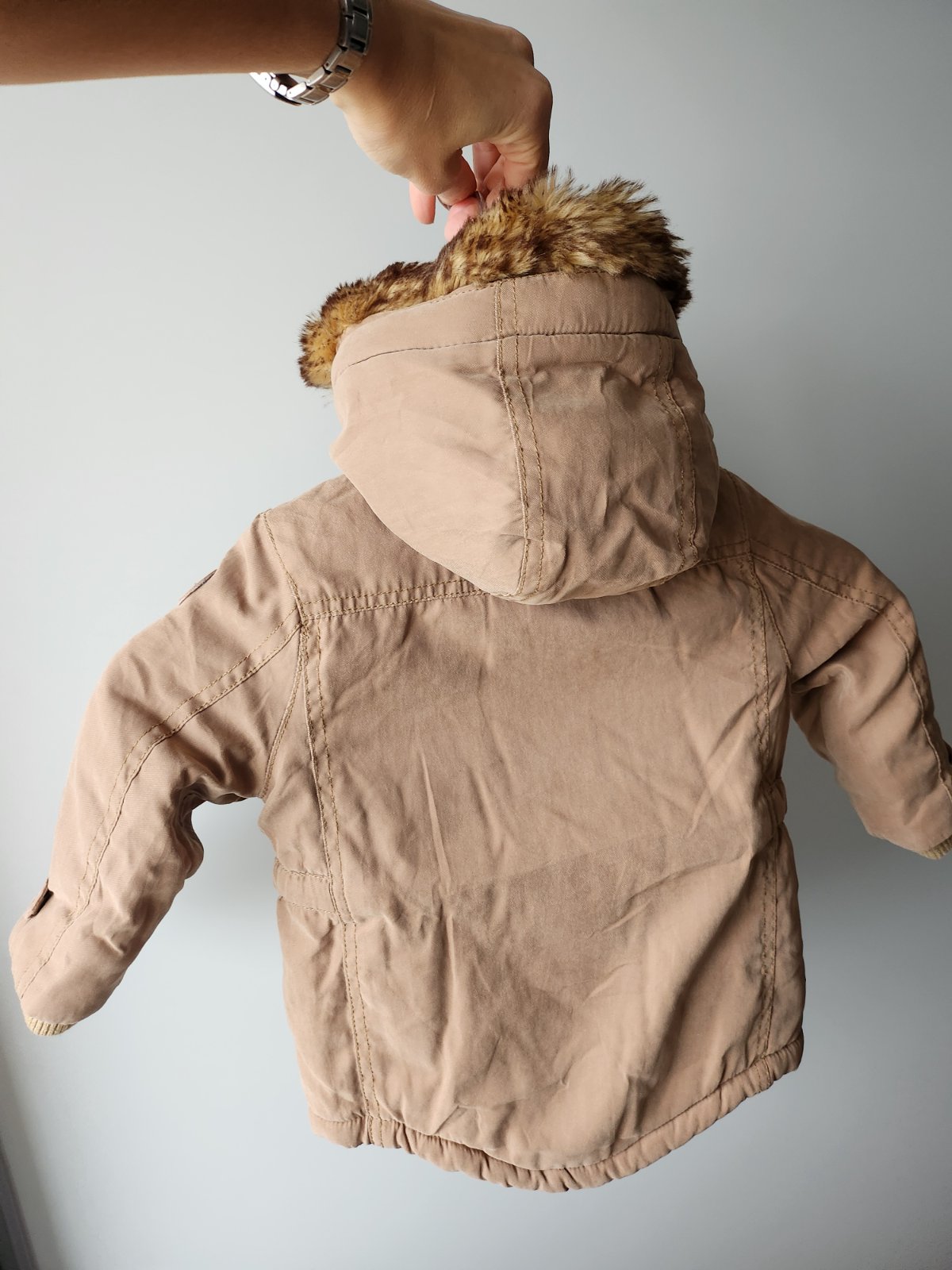 Vnútro zateplené umelým kožúškom. Kapucňa napevno, kožušina z kapucne sa dá odopnúť.
