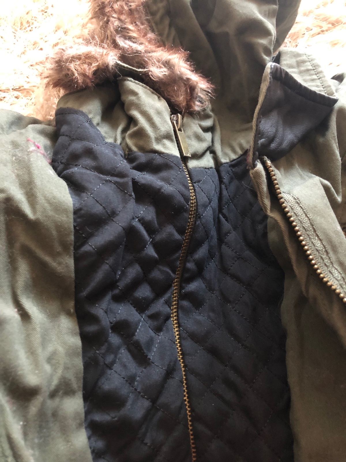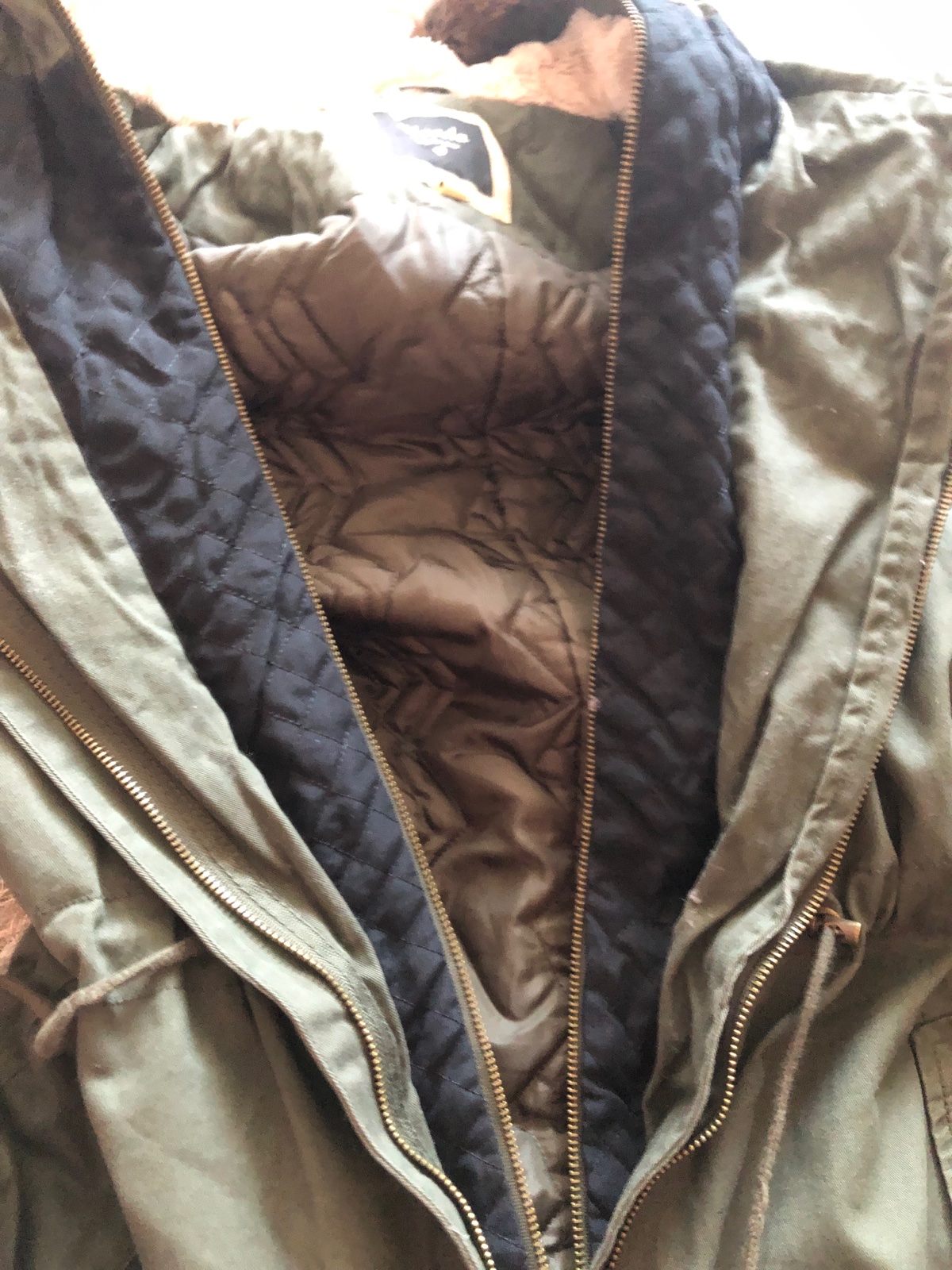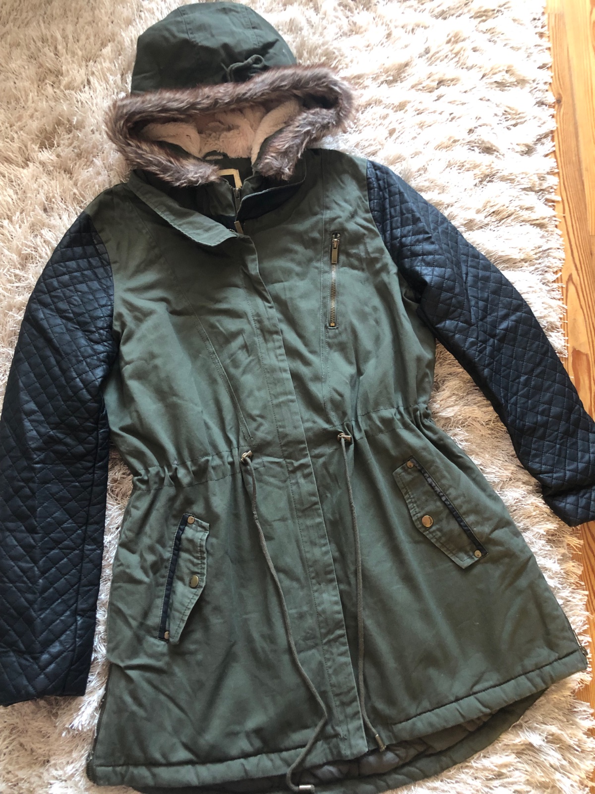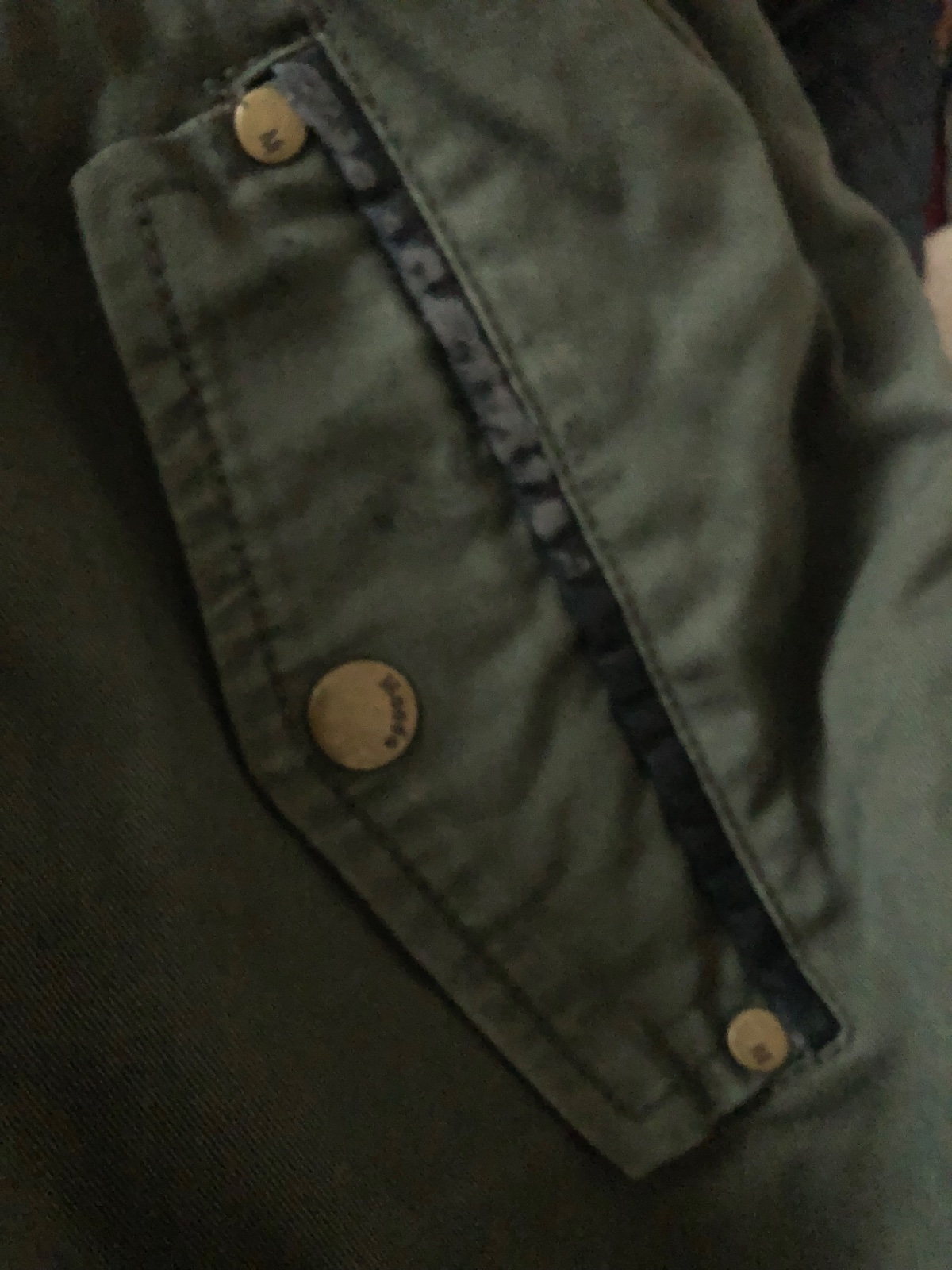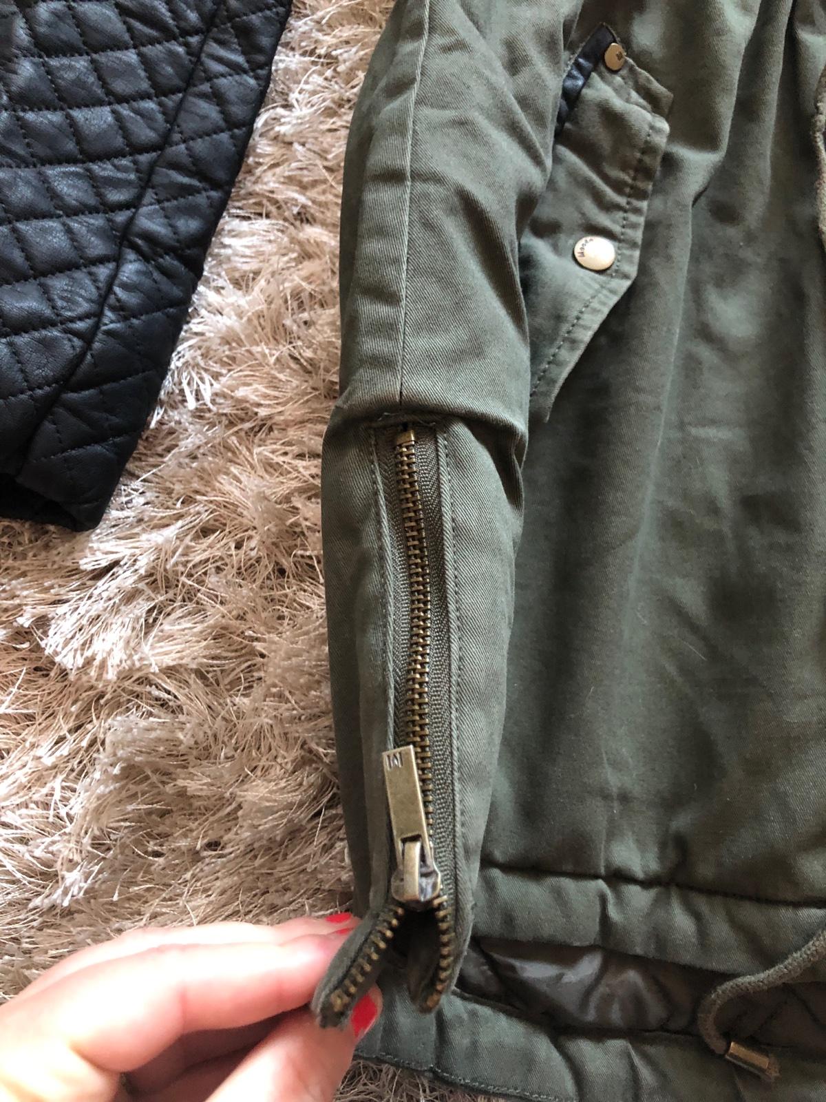 Sirka pod pazuchami je 57x 2, dzka zadna 87 cm. Na lavom vrecku ocuchana kozenka a este niekde ale to mininlane az nepatrne cuchnura kozenka na rukavoch. Inac stav dobry.