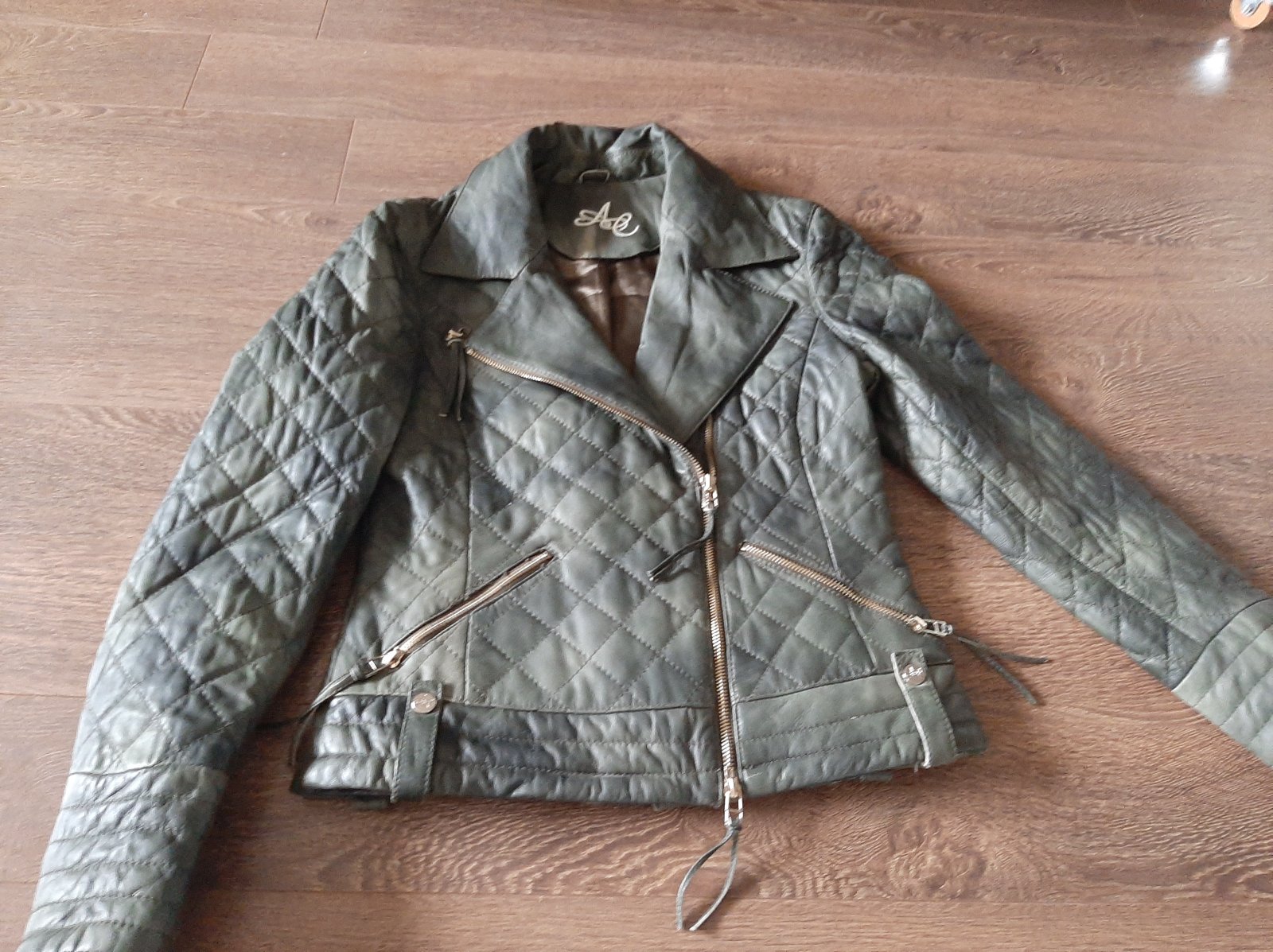 Neposkodena, povodne na nej bola aj kozusina, ale uz sa poskodila, tak som ju dala prec.Gombiky, na ktorych bola prichytena okolo krku som odparala.Bunda je nositelna stale , mne uz uzka.Posuvam.Prava koza, khaki.Dlzka 57 cm, sirka ramien 41 cm,sirka pod pazuchami 45 cm, pri vreckach 40 cm,dole 45 cm.Rukav od konca ramena 61cm.Cena aj s postou je 30 eur.