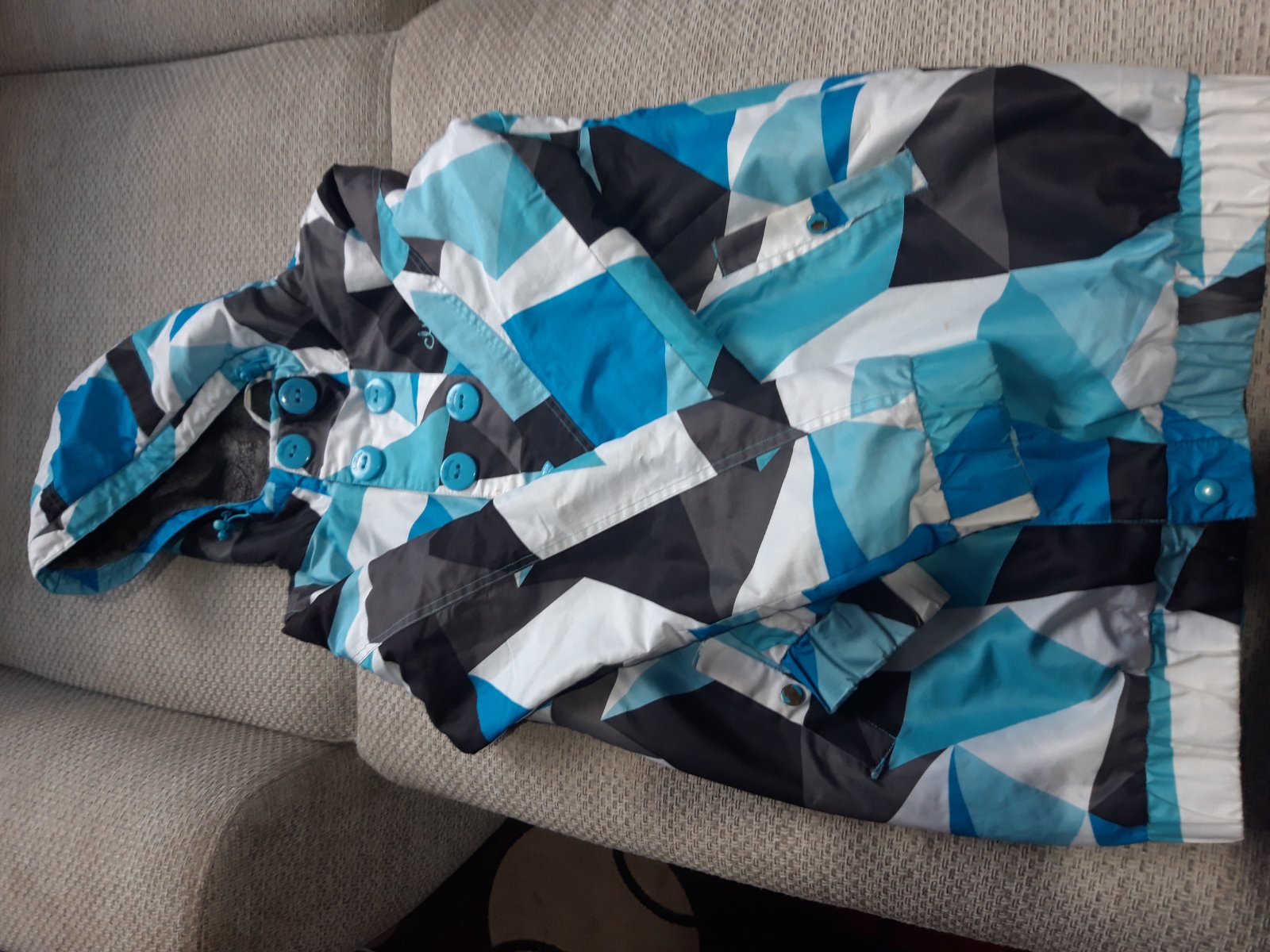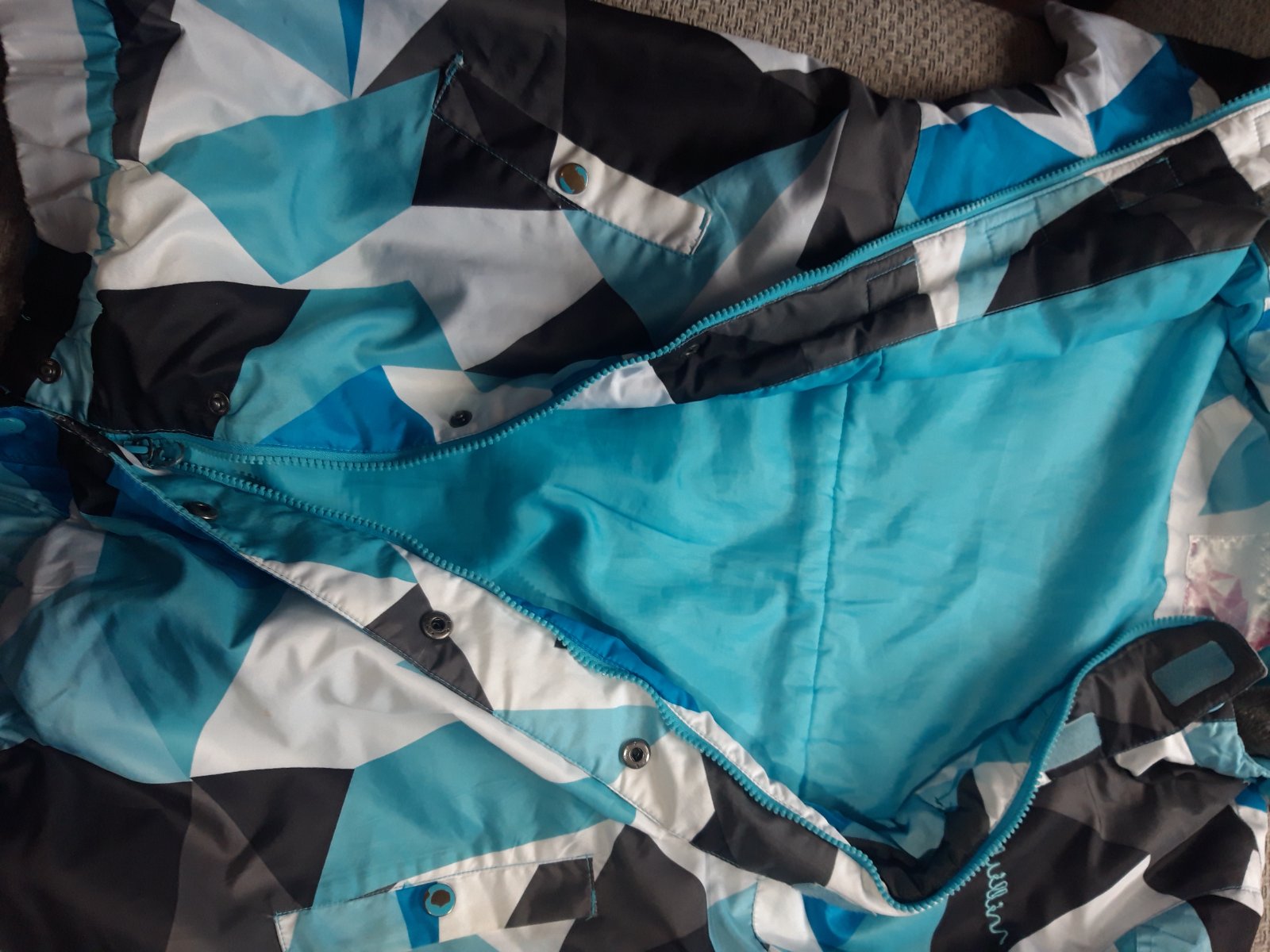 Nosená dlhšia vetrovka/bunda,má malé fĺaky/viď foto/ ináč v dobrom stave, nepotrhaná, pre nenáročnú mamičku aj do školy, veĺkosť uvedená M my sme nosili ako č.164