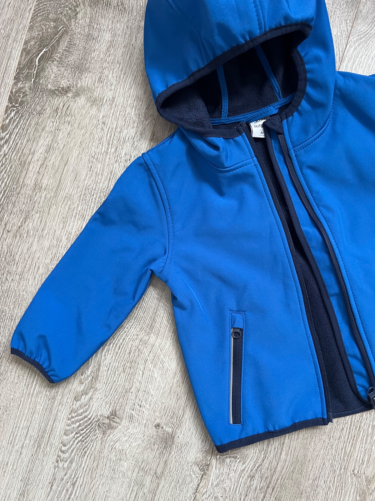 Nasa oblubena. Velkost uvedena 92 ale ponosite i skor. Farba ako na prvych fotkach, na rukavoch a popri zipse trosku vidno pranie preto prikladam i tu poslednu fotku.