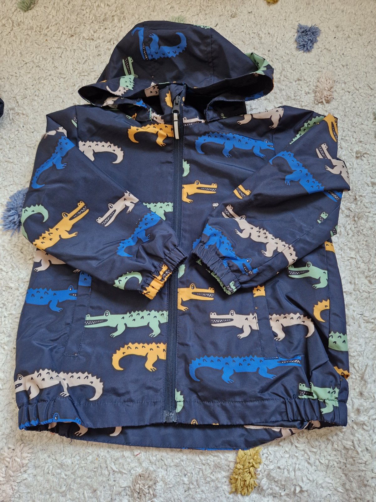 Bundicka ako nova..podsita bavlnou..nie je uplne tenka..kvalitna.Cca na 6/7 rokov. Rozmery:dlzka 45, rukav: 49, sirka 39.5