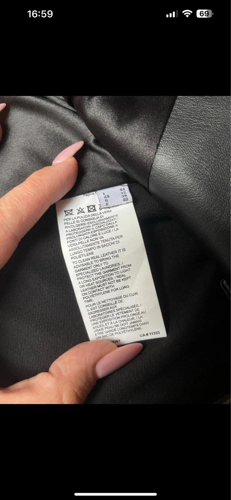 Koženkova bunda GUESS s malými oderkami na rukáve a okolo krku z vnútornej strany. Stále nositeľná.