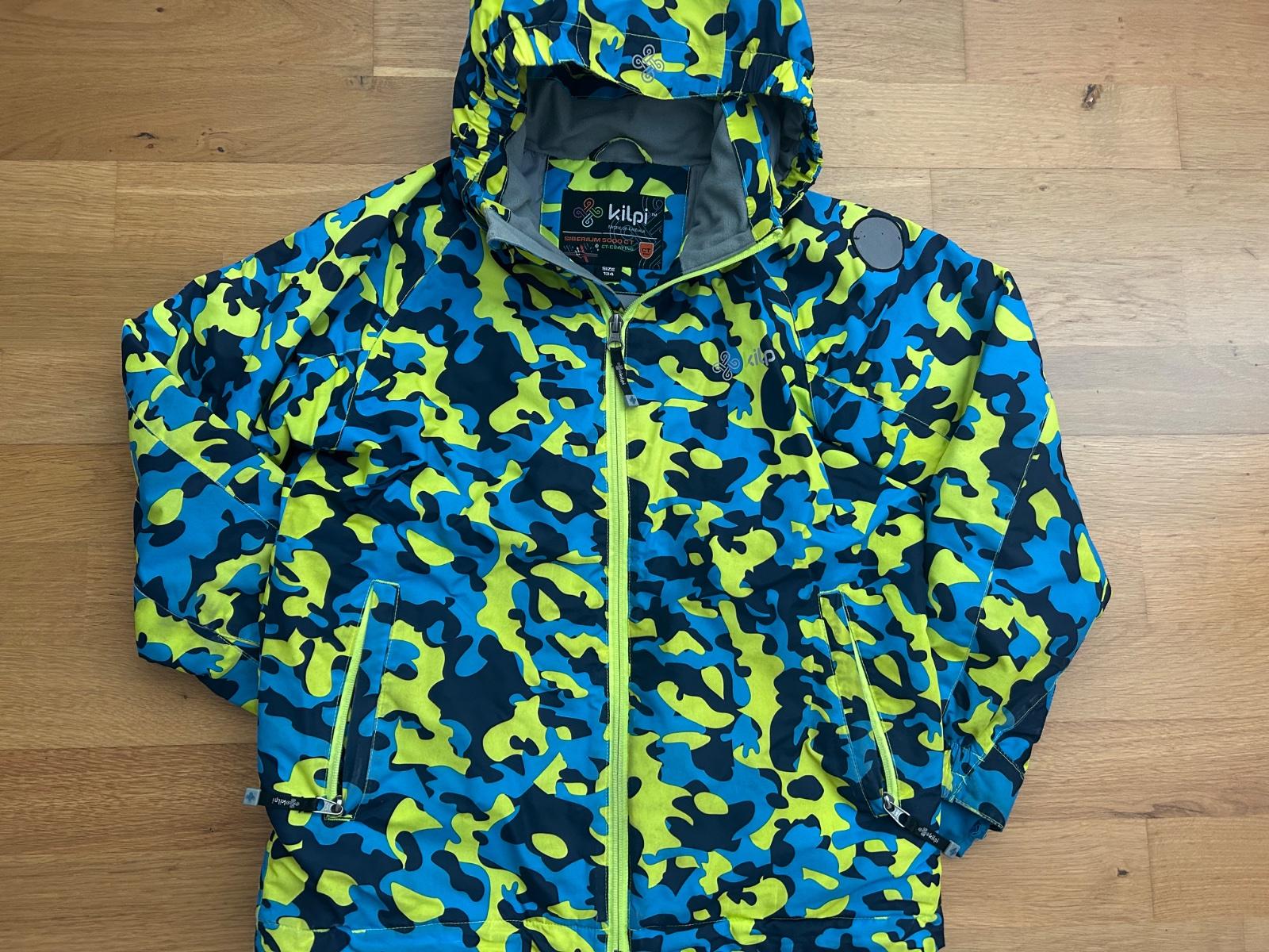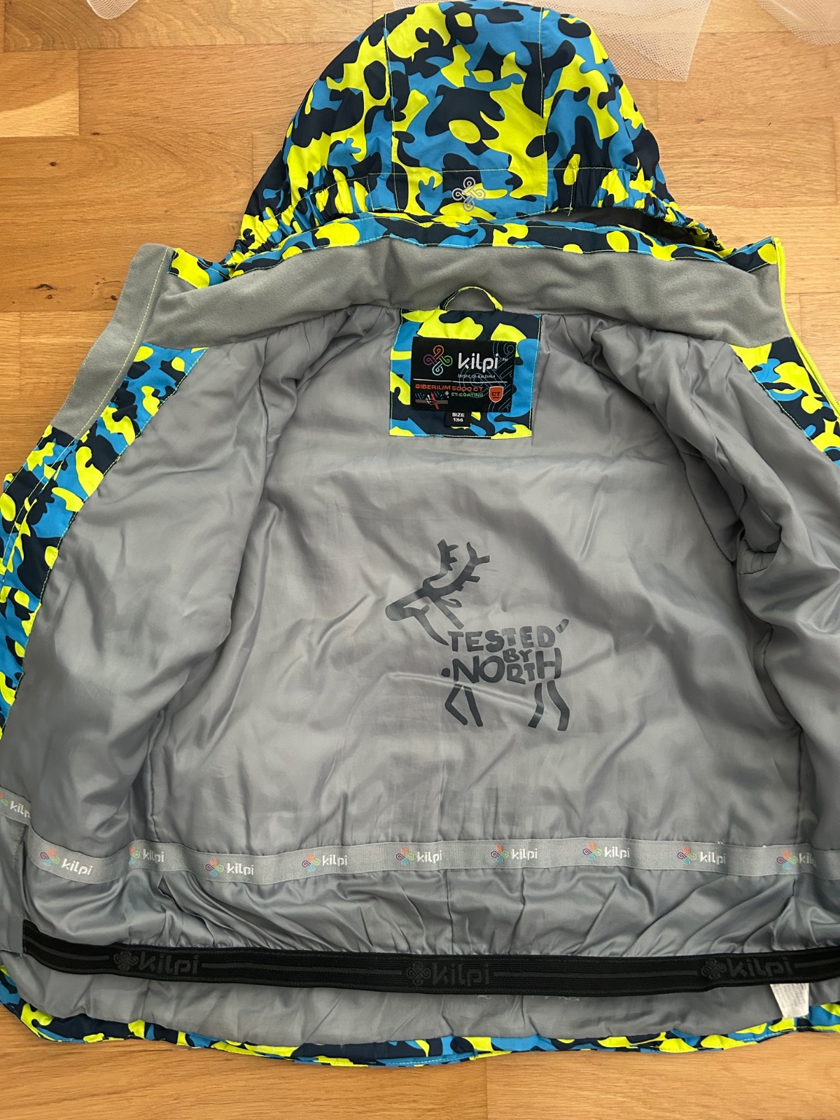 Bunda je v dobrom nosenom stave. Vodeodolná, 5000mm. snehový pás, vrecko na skipas, odopínateľná kapucňa. Celk. dlžka 56cm, šírka 44cm, rukáv od krku 56cm.